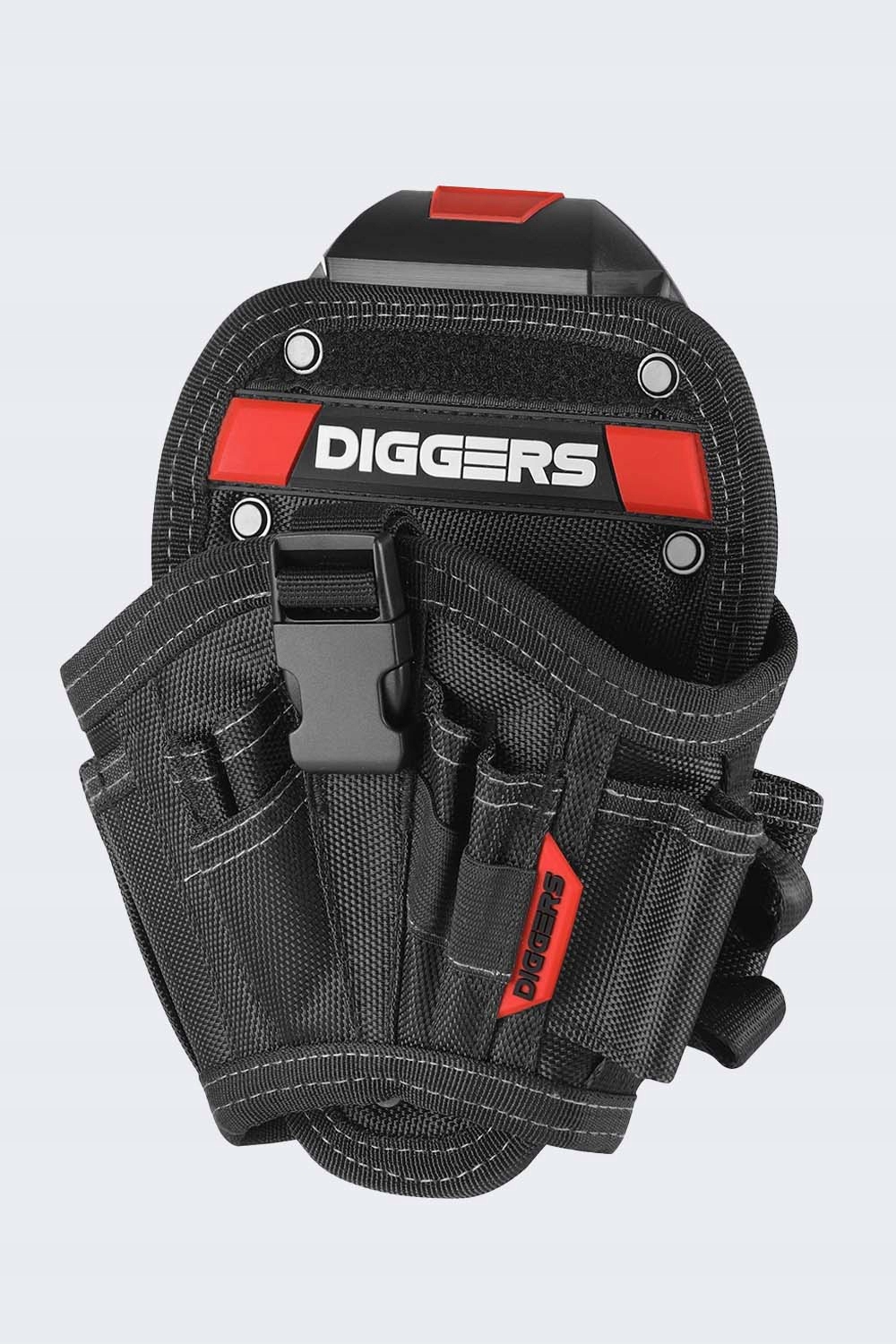 Розширене розташування кишень і петель є важливою особливістю цієї моделі, пропонуючи користувачу аж 13 практичних місць для зберігання інструментів. Він має закриту кишеню для аксесуарів, 2 петлі для викрутки та 7 кишень для насадок. Таким чином, ця кобура для викрутки є комплексним рішенням, яке відповідає потребам як правшів, так і лівшів. Навіть у найскладніших умовах кобура для дрилі Diggers стане надійним транспортним та організаційним інструментом.