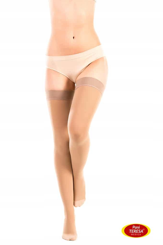 Компресійні панчохи Pani Teresa CLASSIC CCL2 правильно одягнені, якщо верхній край манжети піднятий. 5 см нижче паху. p>