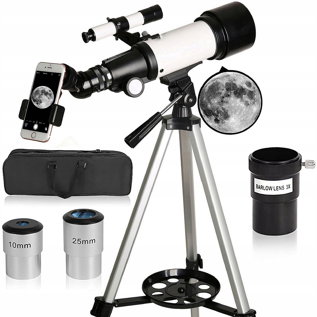 ВІДКРИТИЙ АСТРОНОМІЧНИЙ ТЕЛЕСКОП + 25MM/10MM БІЛИЙ Окуляр + ШТАТИВ