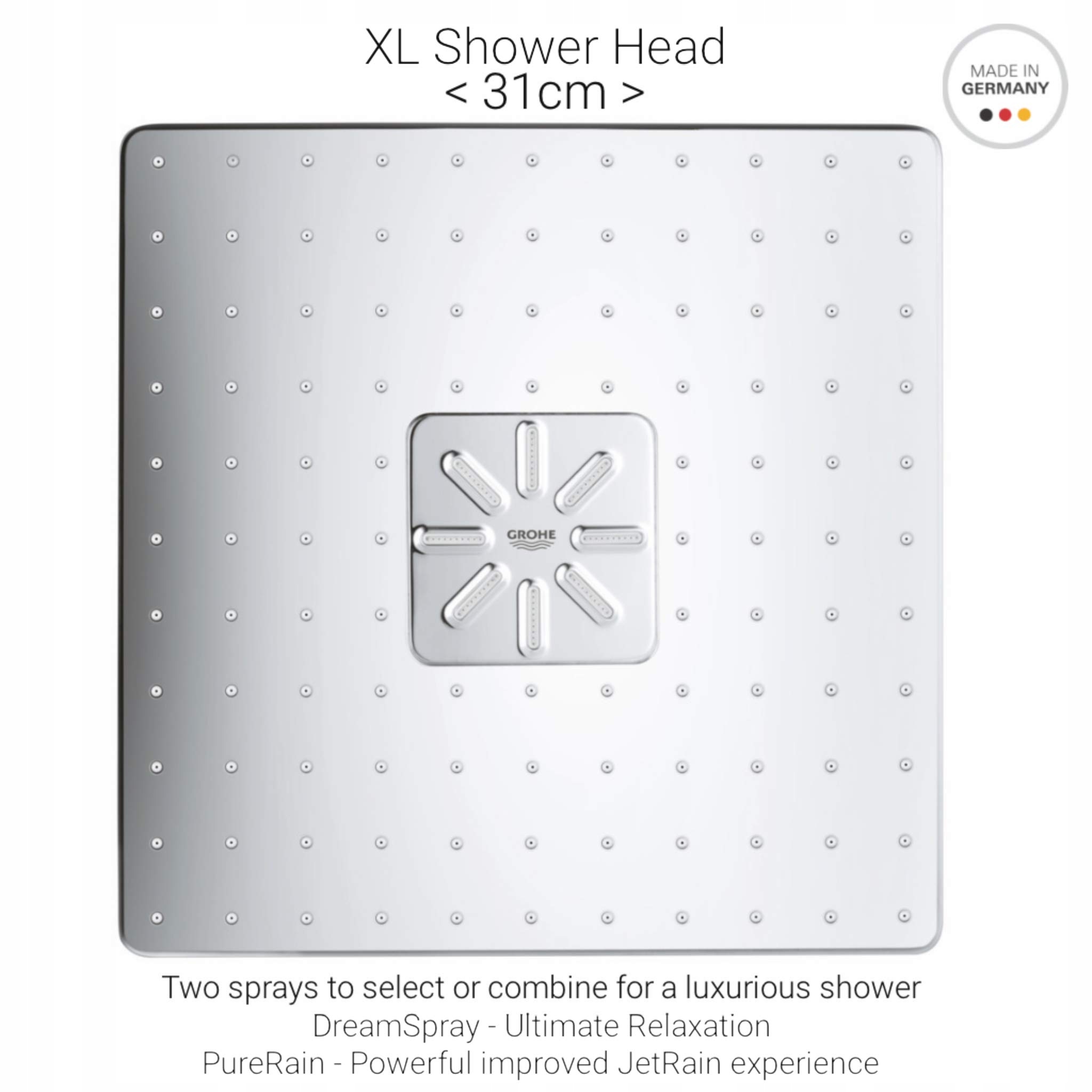 GROHE Rainshower 310 Cube Head — ідеальне рішення для людей, які цінують комфорт і дизайнерський зовнішній вигляд. Цей комплект додасть ванній кімнаті елегантний і сучасний стиль і подарує приємні відчуття під час прийняття душу.
