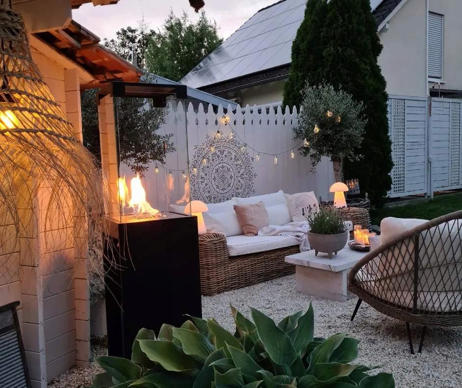 Полум’я, яке кружляє та згинається, і м’яке золоте світло – ось різниця між статичною чорно-білою терасою та жвавим теплим місцем.