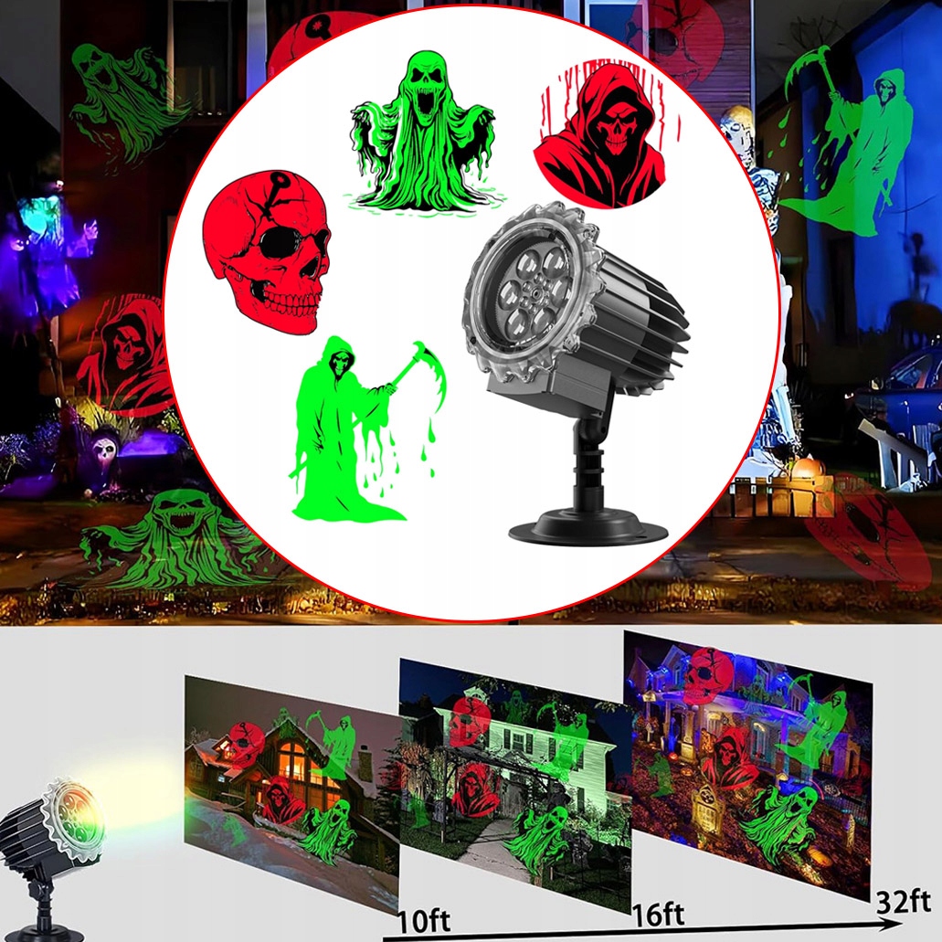 Наш обертовий черепний проектор оживить ваше свято, створюючи динамічні та жахливі візуальні ефекти. Ідеальне рішення для оформлення вхідних дверей, вікон, стін, коридорів і газонів.