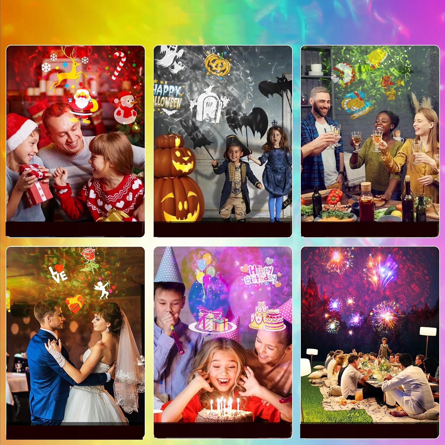 🎁【12 шаблонів сцен】 Багаті візерунки на Різдво, Хелловін, день народження, карнавал, День подяки, День святого Валентина, весілля, Новий рік, День сміху тощо. Ви можете використовувати пульт дистанційного керування, щоб змінити бажаний ефект. Маленька проекційна лампа може створити цікаву атмосферу на всіх фестивалях протягом року.