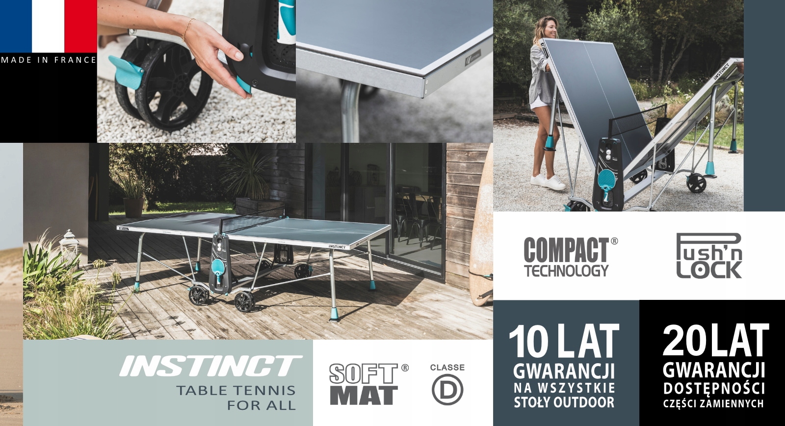 Якщо ви шукаєте стіл, який можна поставити як вдома, так і в саду, оберіть Instinct. Це хороший вибір, щоб почати вашу сімейну пригоду з настільного тенісу. Фахівці з Корнільо у Франції гарантують щонайменше 10 років задоволення.