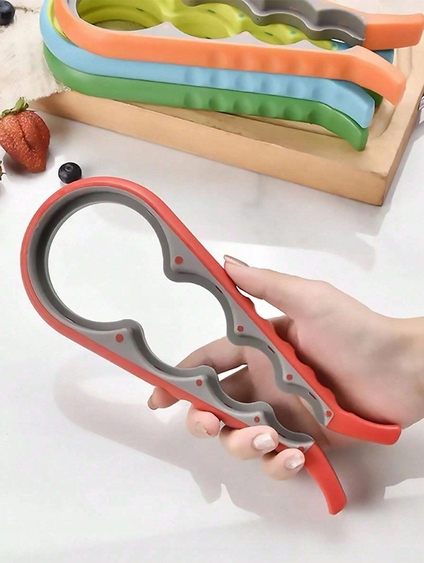 Після того, як надівши відкривачку на кришку, просто стисніть її та повільно відкрутіть банку чи пляшку. Відкривачка має чотири отвори різного розміру для банок і пляшок.
