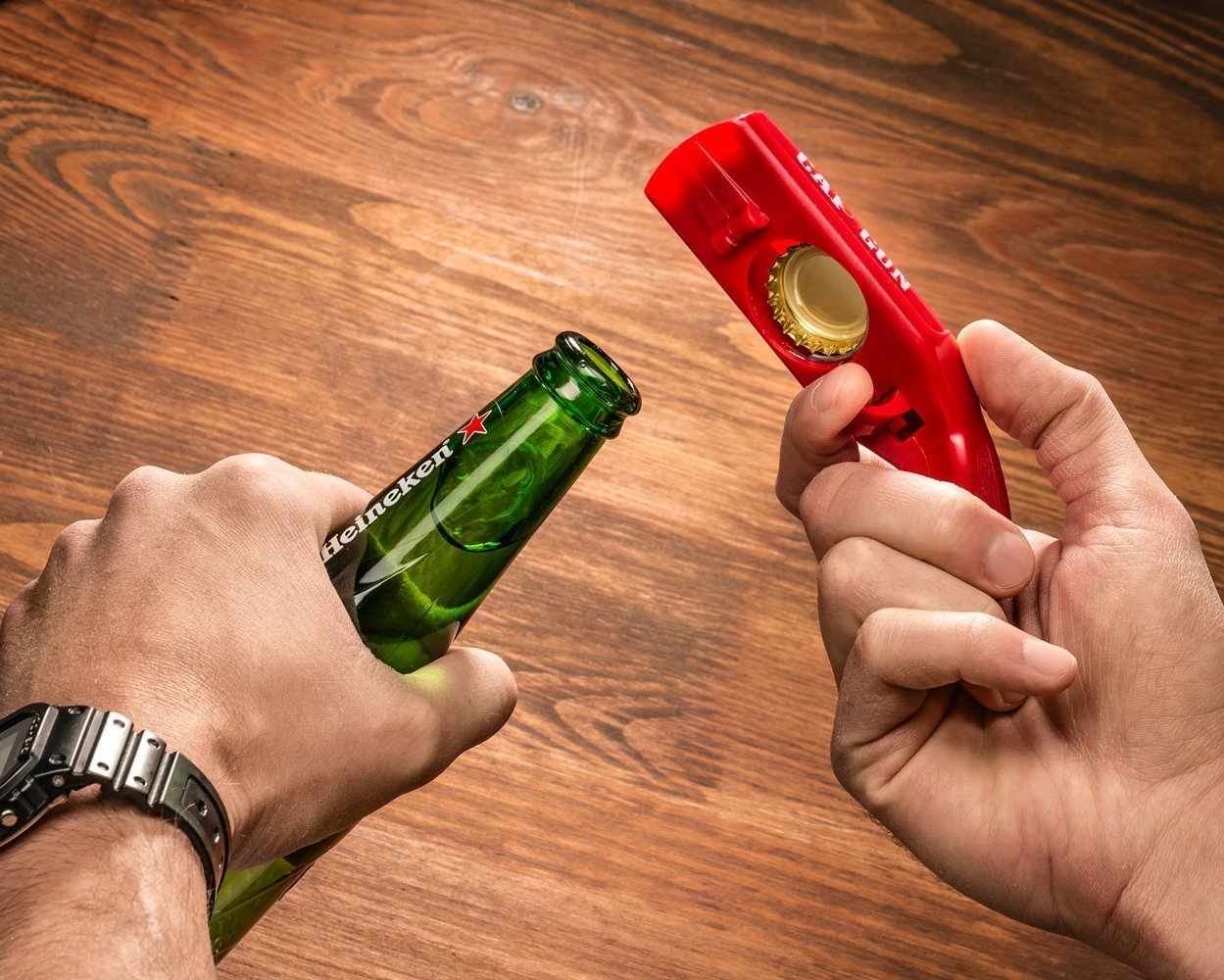 Надзвичайно крутий відкривач для пляшок у формі... дробовика. Мало того, що ефективно відкривається, так ще й досить далеко стріляє кришками :). Вживання пива набуває нового виміру з цією відкривачкою, ви можете не тільки насолоджуватися улюбленим напоєм, але й весело провести час наодинці чи з друзями та довести свою акуратність ;) Просто розтягніть пружину, відкрийте пляшку (кришка буде триматися за магніт), і ви можете натиснути на курок. Однак пам’ятайте, що не можна цілитися в людей або тварин.