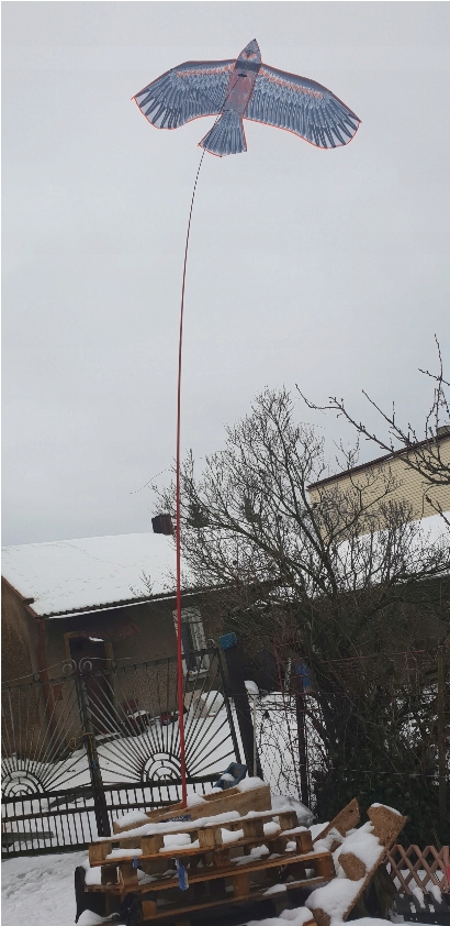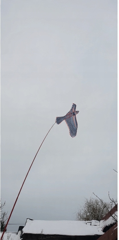 - повітряний змій піднімається в повітря зі швидкістю вітру 2 км/год, модель піднімається нерівномірно, що заважає птахам звикнути до його присутності,