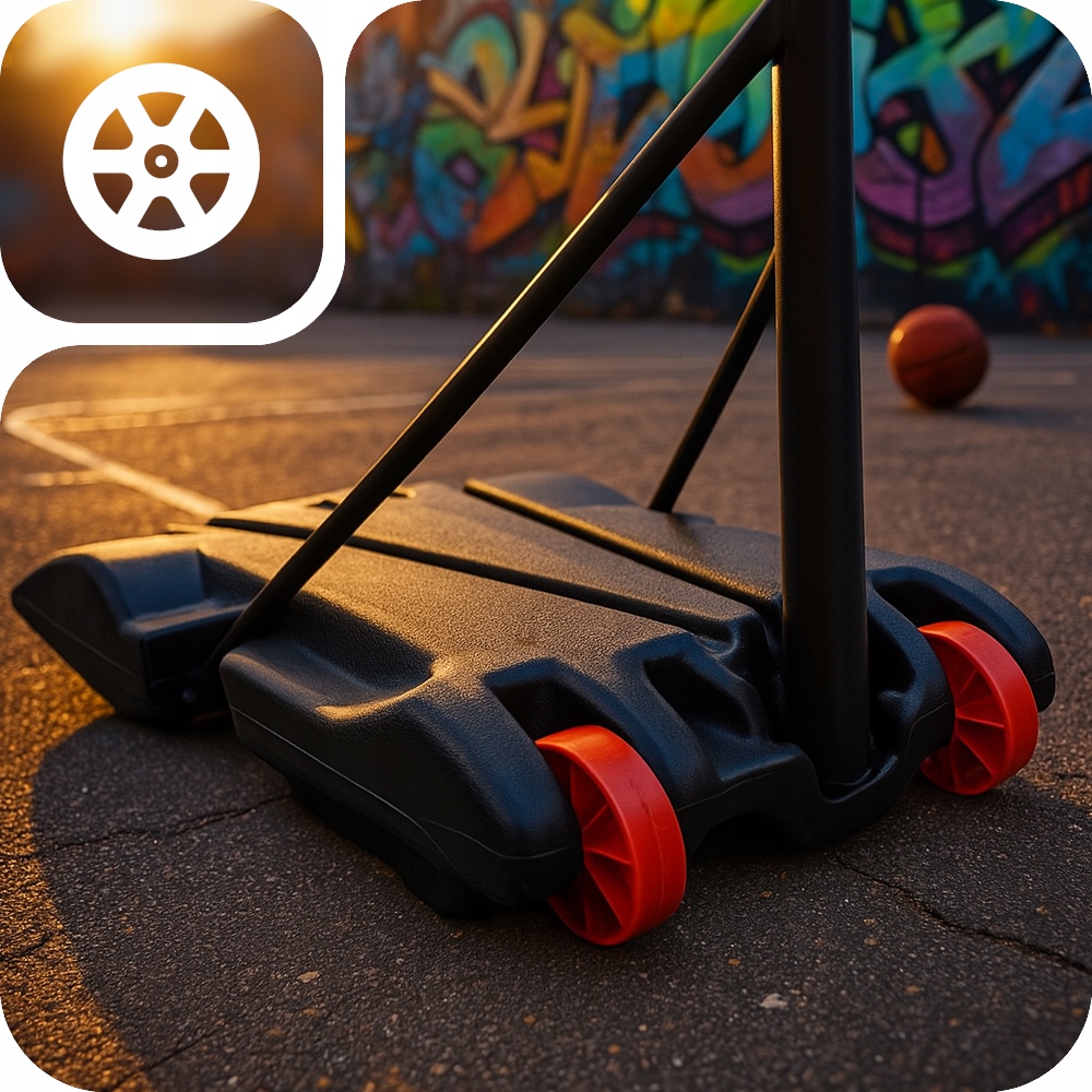 Стабільність забезпечується основою потужністю до 58 літрів , яка може бути заповнена водою або піском. Мобільні колеса дозволяють легко змінити навчальний майданчик - від проїжджої частини до саду, від саду до тераси. 🌳🏠