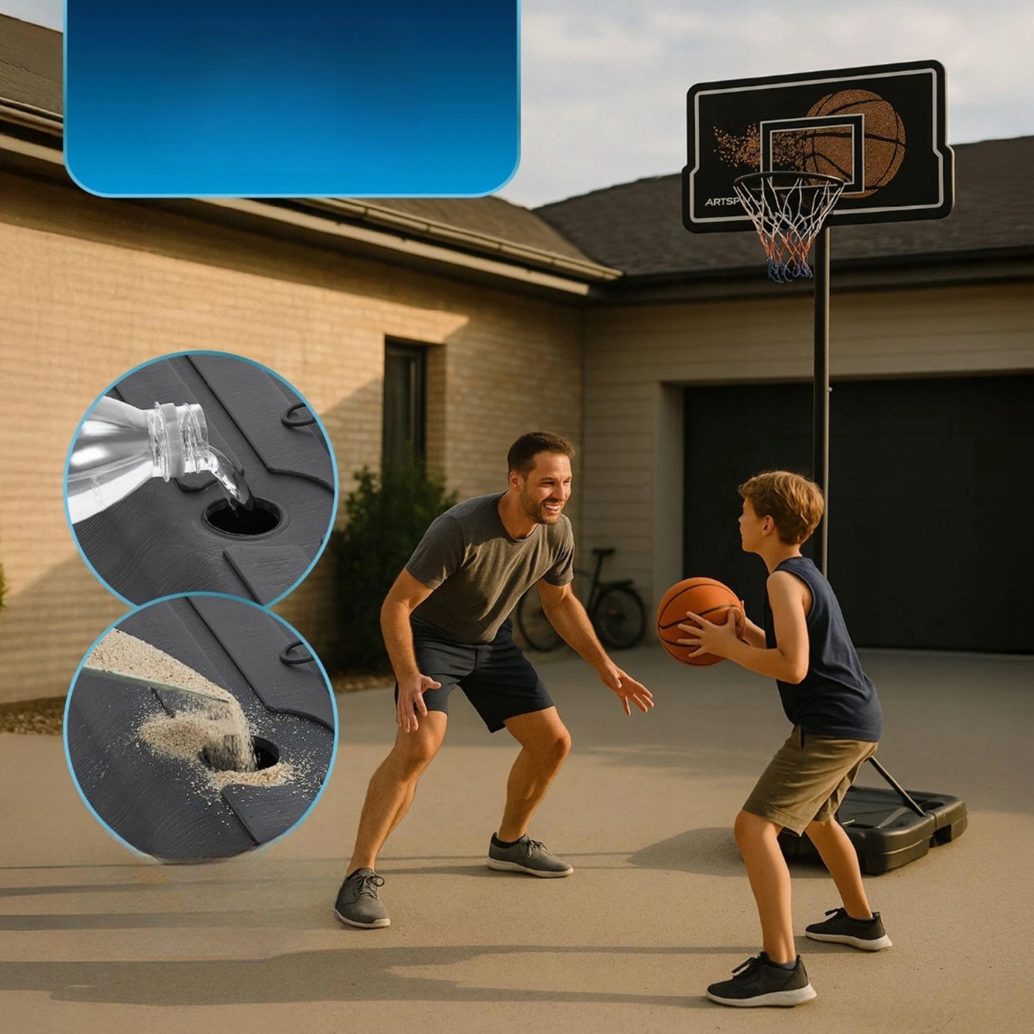 мобільний та високоякісний баскетбольний кошик - це чудова забава та тренування для всієї родини - у саду, у дворі чи ігровому майданчику. Завдяки регулювання висоти трьох stage Ви можете легко відрегулювати рівень до віку та навичок користувача - з 2,55 м до професійної висоти 3,05 м.