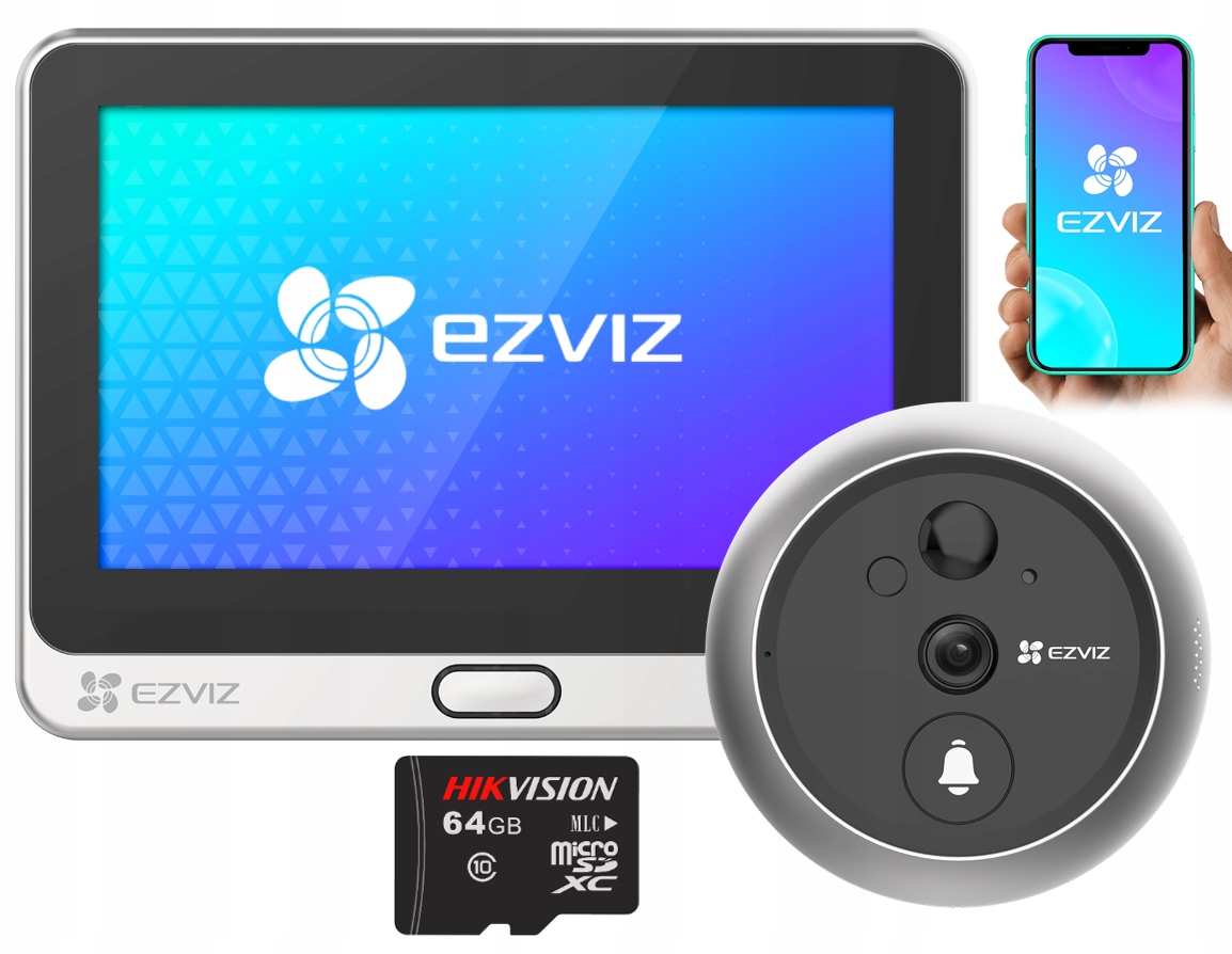 ВИДОШУКАЧ EZVIZ DP2C 3-в-1 - КАМЕРА, ДЗВОНОК І ВИДОШУКАЧ + карта microSD на 64 Гб