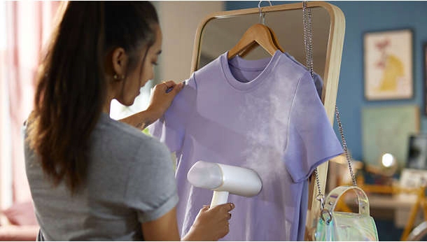 Портативний відпарювач серії 3000 легкий, компактний і складається з того, що робить його простим у використанні та зберіганні, і ви можете відмовитися від свого одягу в будь-який час і в будь-якому місці. Це ідеальний компаньйон для швидкої та легкої підправки вдома чи в дорозі.
