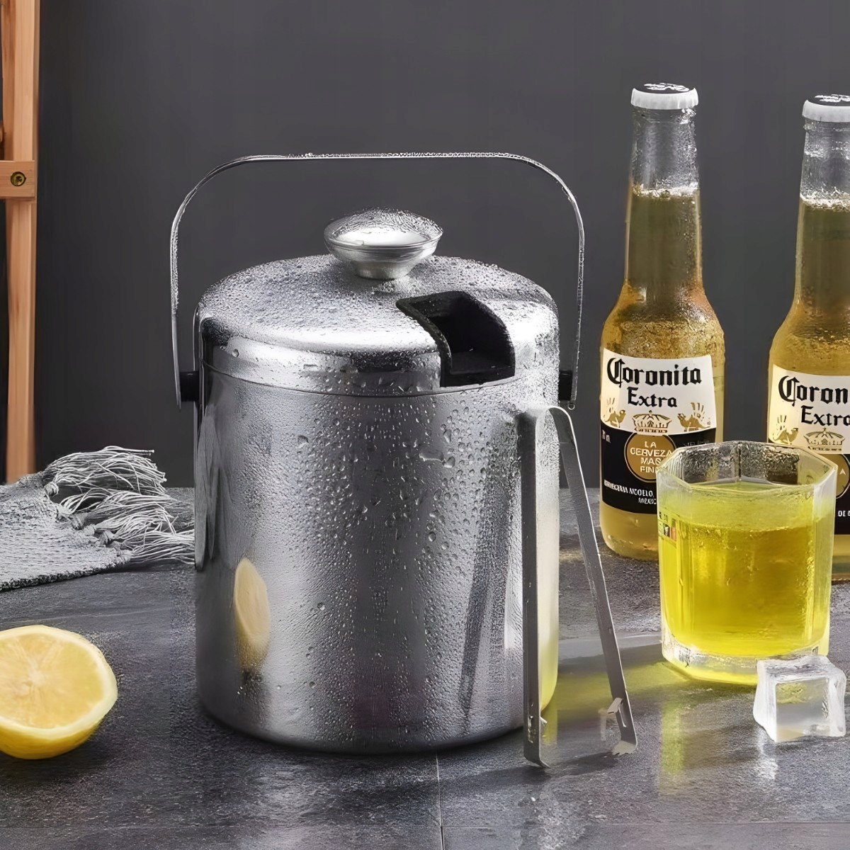 відро з льодом, завдяки подвійним стінам, ідеально підтримує низьку температуру , що робить лід, що тане значно повільніше. Це ідеально працює в спекотні дні, коли ви хочете, щоб напої залишалися освіжаючими холодними.