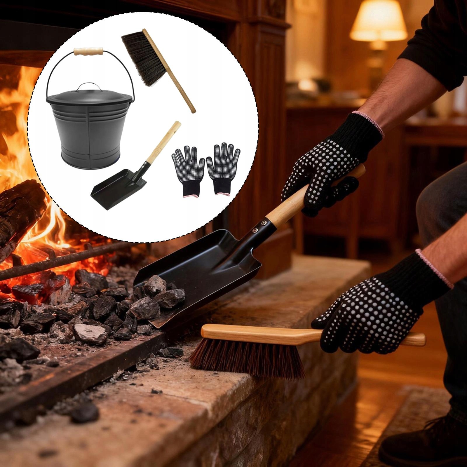 [Повний набір]Цей набір інструментів для каміна включає відро, щітку, лопату та рукавички для повного обслуговування