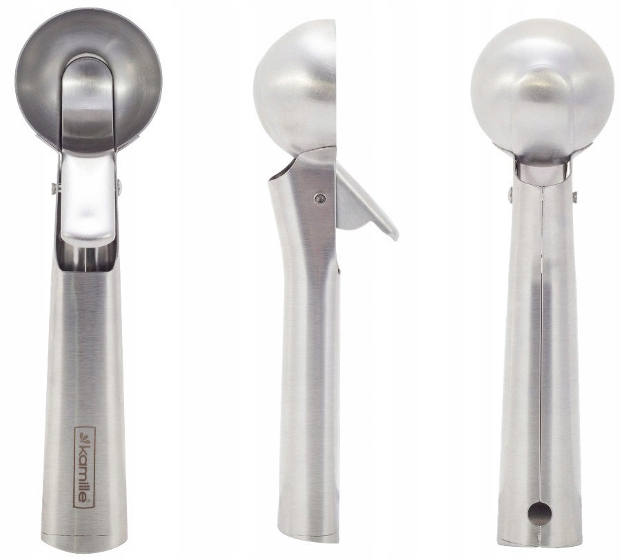 Антипригарне покриття - щоб ви могли зручно та якісно порціонувати не лише морозиво , а також рис або пюре . Коли ми натиснемо на ручку, частина буде відрізана металевим елементом.