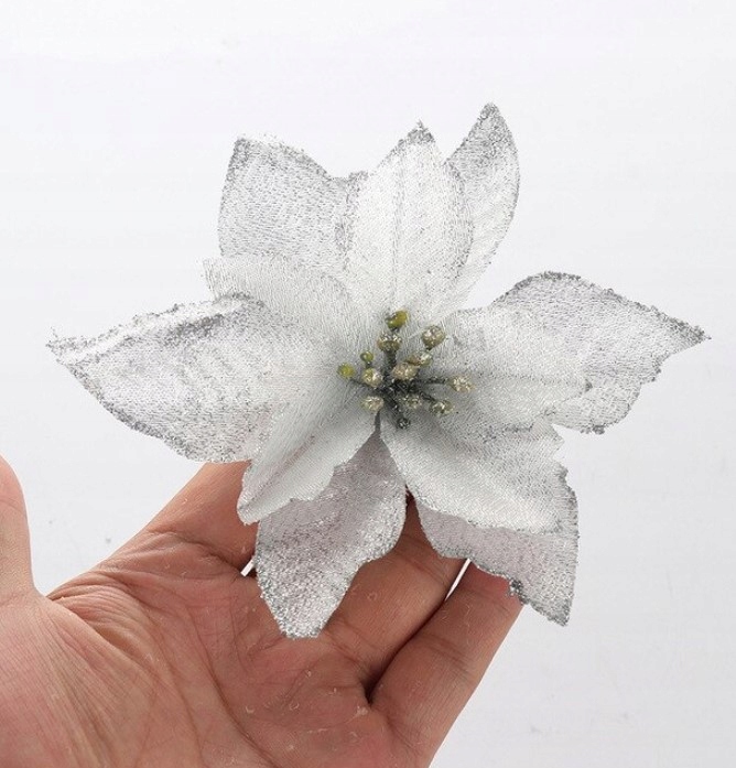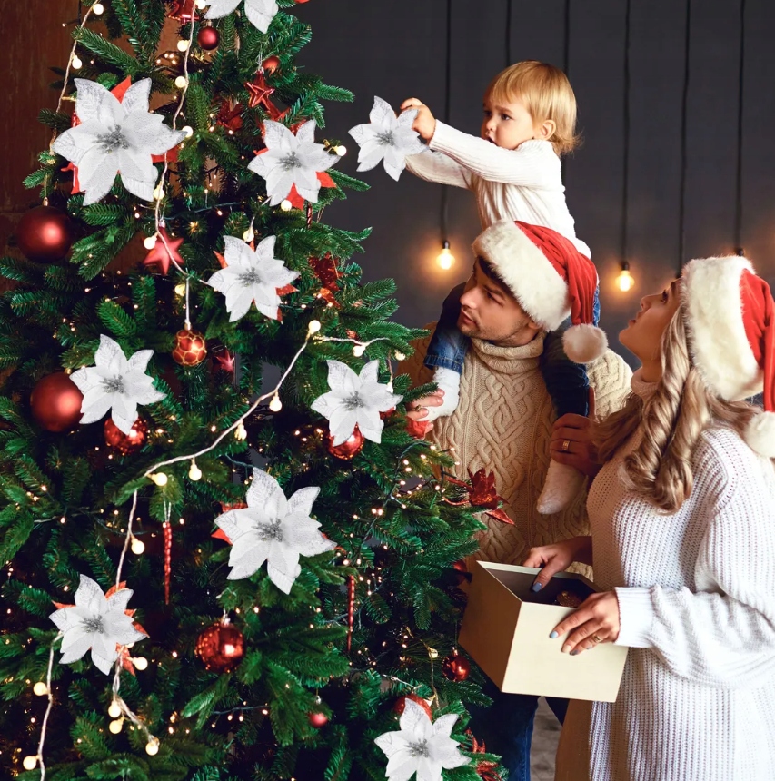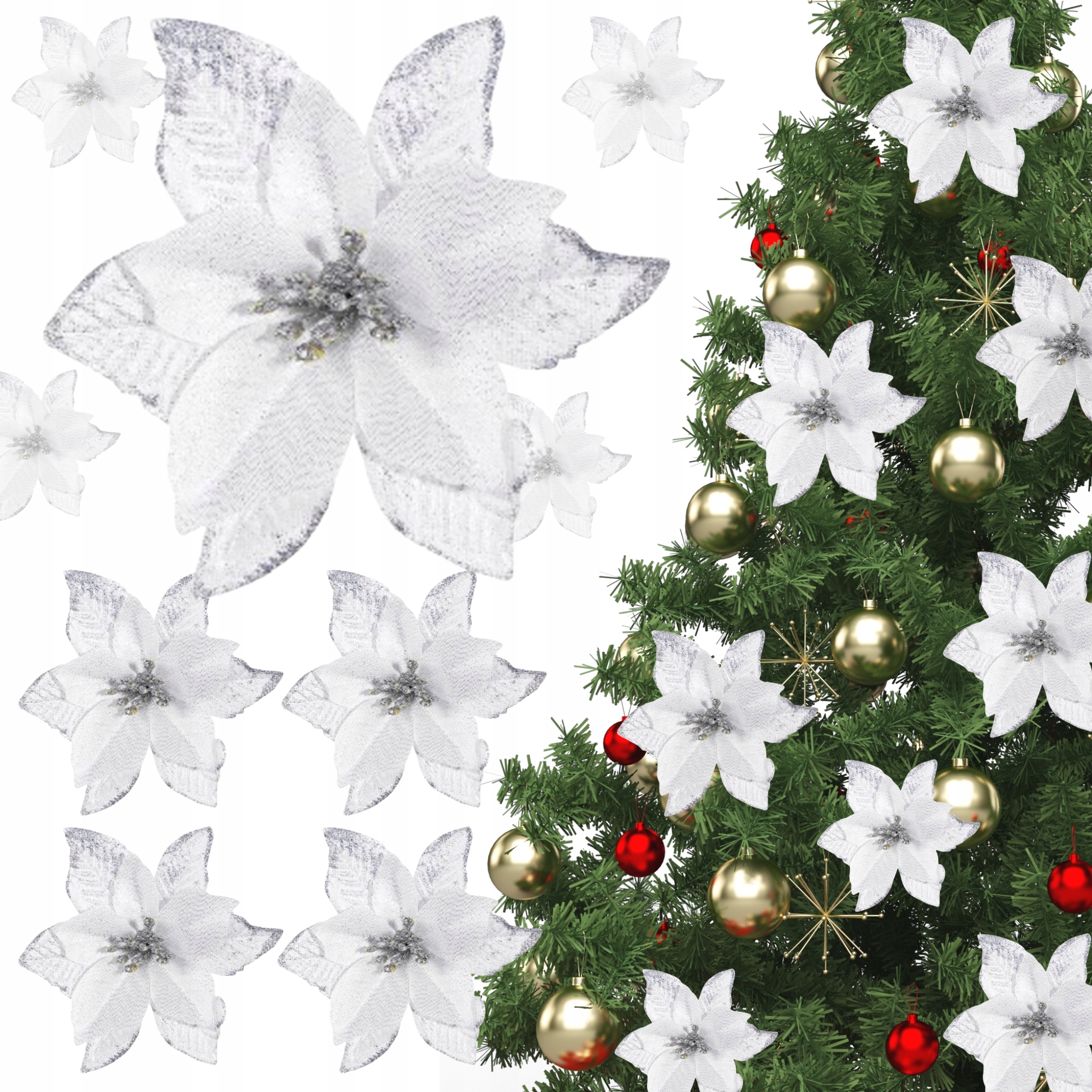 Зірка складається з двох частин, які видно на фото. Він має більші та менші пелюстки. Все зроблено з точністю, завдяки чому прикраси виглядають чудово! Крім того, вони покриті блестками, які красиво виблискують у світлі ялинкових вогнів.