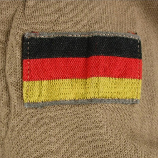 Оригінальна футболка із засобів німецької армії - Бундесверу. Виготовлений з високоякісного матеріалу, що складається з 68% бавовни, 32% поліаміду. Футболка еластична, тому ідеально прилягає до нашого тіла. На обох рукавах німецькі прапори. Спереду є подвійна липучка, також є моделі з одинарною і навіть без. Майте це на увазі.