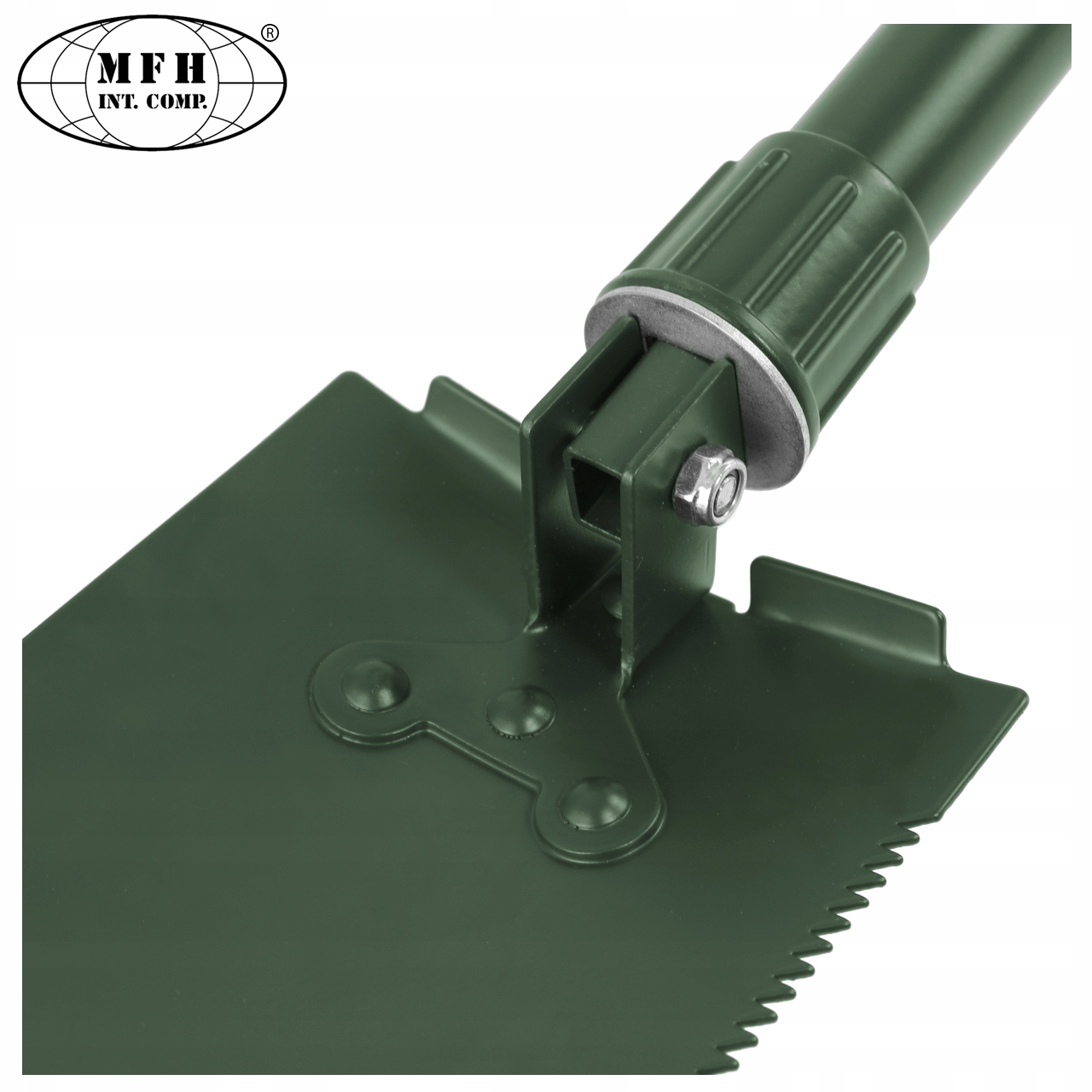 Високоякісна складна лопата з футляром від німецького бренду MFH – це універсальний багатофункціональний інструмент, який, крім класичної функції лопати, також виконує функції копалки, пилки та сокиру під час роботи в мерзлому або глинистому ґрунті.