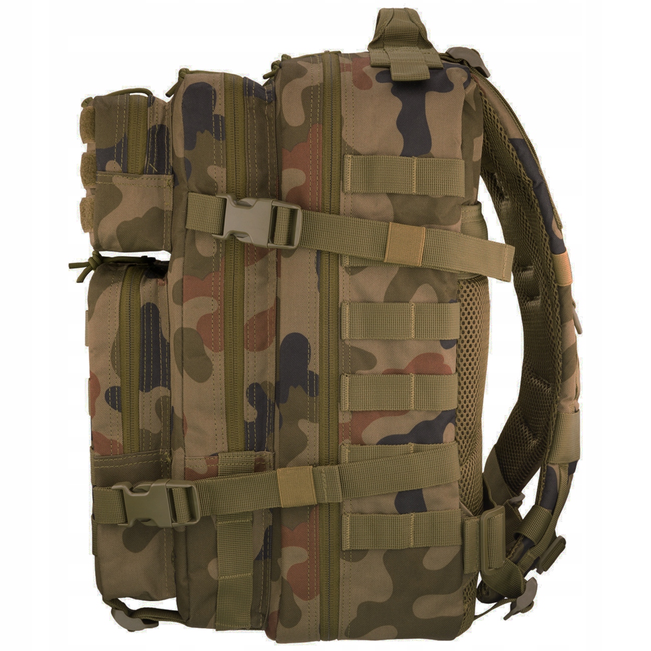 Зовнішні стрічки сумісні з системою Molle/PALS, що дозволяє приєднати додаткове обладнання та збільшити ємність рюкзака. Стисні ремені на бічні дозволяють відповідати рюкзаку до його вмісту. Підкладні брекети та рюкзак з вентиляційними каналами забезпечують комфорт носити навіть при високому навантаженні. Широкі брекети 5 см оснащені практичними дюпами D. Крім того, рюкзак має регульований поясничний пояс, який допомагає краще поширювати вагу та ручку для перенесення рюкзака в руці.