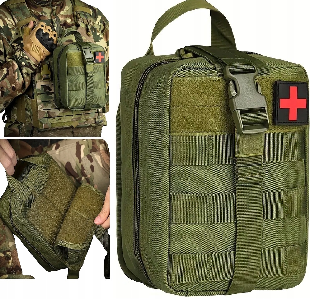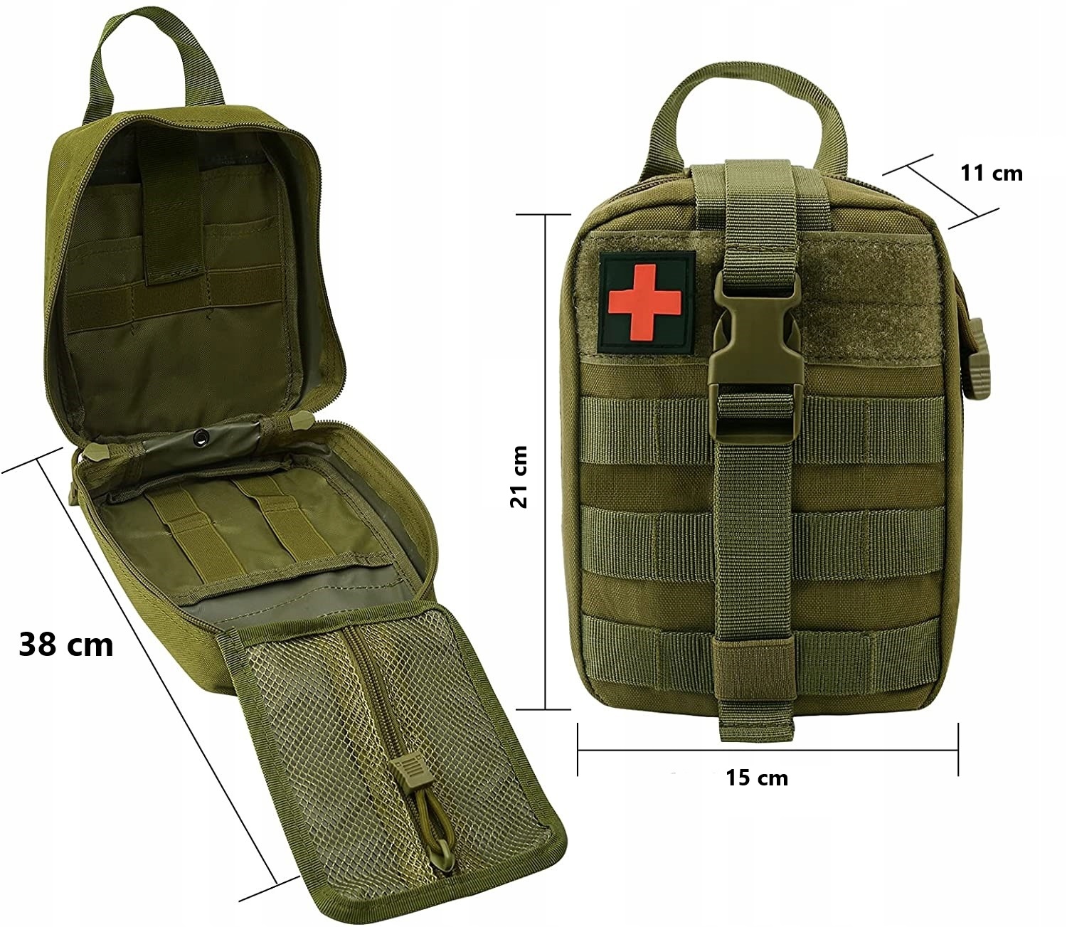 У комплекті першої покупки є численні кишені, які дозволяють впорядковувати медичне обладнання. Це забезпечує легкий доступ до необхідних предметів та швидку відповідь у надзвичайних ситуаціях. Він має різні варіанти вкладення, такі як ремінь, рюкзак або тактичний жилет. Це може бути легко адаптоване до ваших власних уподобань та потреб.