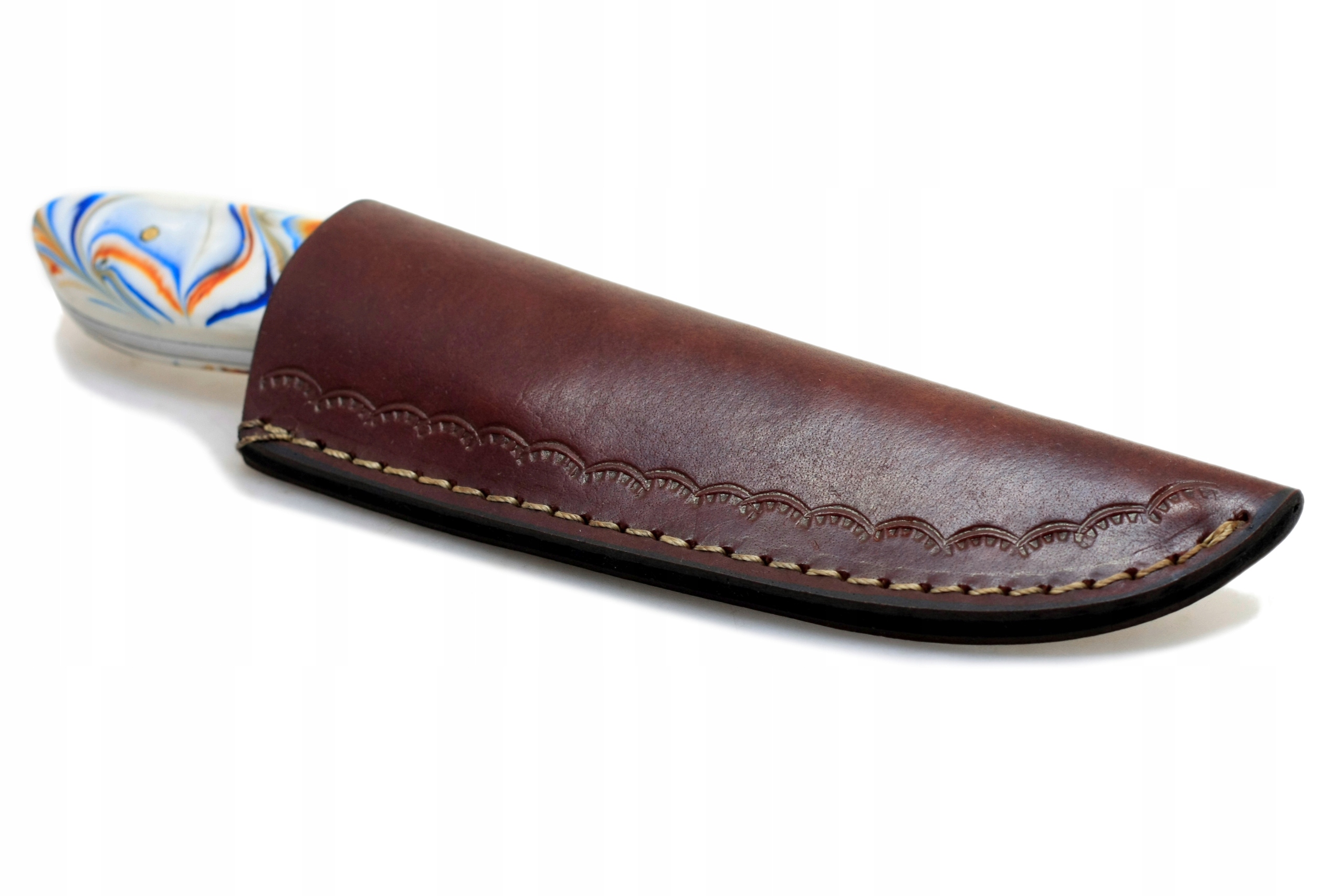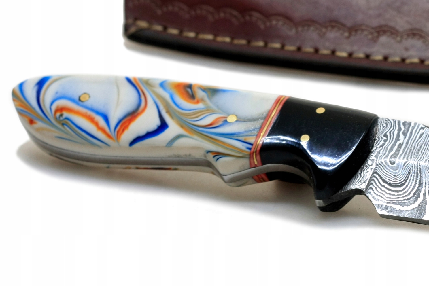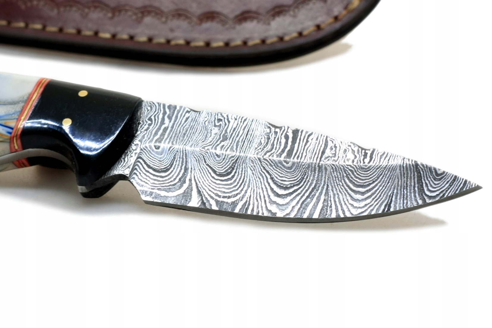 Нож ручної роботи (один з найпопулярніших ножів ручної роботи, який буде працювати в найвибагливіших ситуаціях виживання) , лезо, виготовлене з високої якості damask Steel , завдяки якому воно тривалий час підтримує свої ріжучі властивості, риба, риба. Ручка, виготовлена з смоли . Обкладинка натуральної телячої шкіри забезпечує ідеальний захист леза.