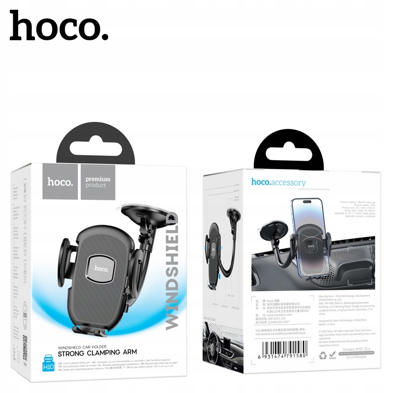 hoco. H10 General - це тримач для затискача автомобіля для телефону / телефону, з метою встановленого на скляному / скляному лобовому склі, оснащеному гнучкою, регульованою рукою, надаючи необмежену кількість можливостей регулювання та адаптації до ваших власних потреб водія та кульки, сформульованих, кріплених кремнієвим посвяченням із клепом, розробленим для мобільних телефонів / смартфонів або таблетками. Більше 0,5 кг і розмір відображення від 4,5 до 7 дюймів. Ручка має додатково регульовані нижні ноги.