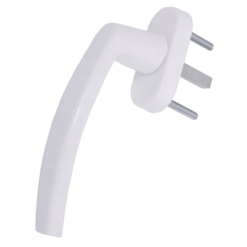 Віконна ручка білого кольору - це стандартна віконна ручка з пластику. Рукоятка, кришка і корпус виготовлені з пластику. Ручка має стандартний розмір шпильки, довжина 35 мм і товщина 7 мм. Він доступний у версії з кутом нахилу 45 градусів. У набір також входять кріпильні гвинти.
