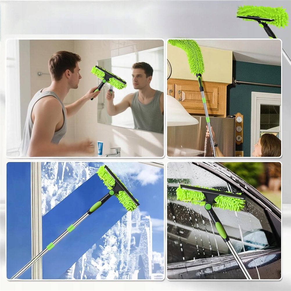 Легко відрегулюйте положення скребка натисканням кнопки. Ідеально підходить для очищення нестандартних вікон і скла, скляних поверхонь, стін, дзеркал, вікон автомобілів, сонячних панелей і високих внутрішніх/зовнішніх вікон. Навіть чистка вашого човна стає дитячою грою!