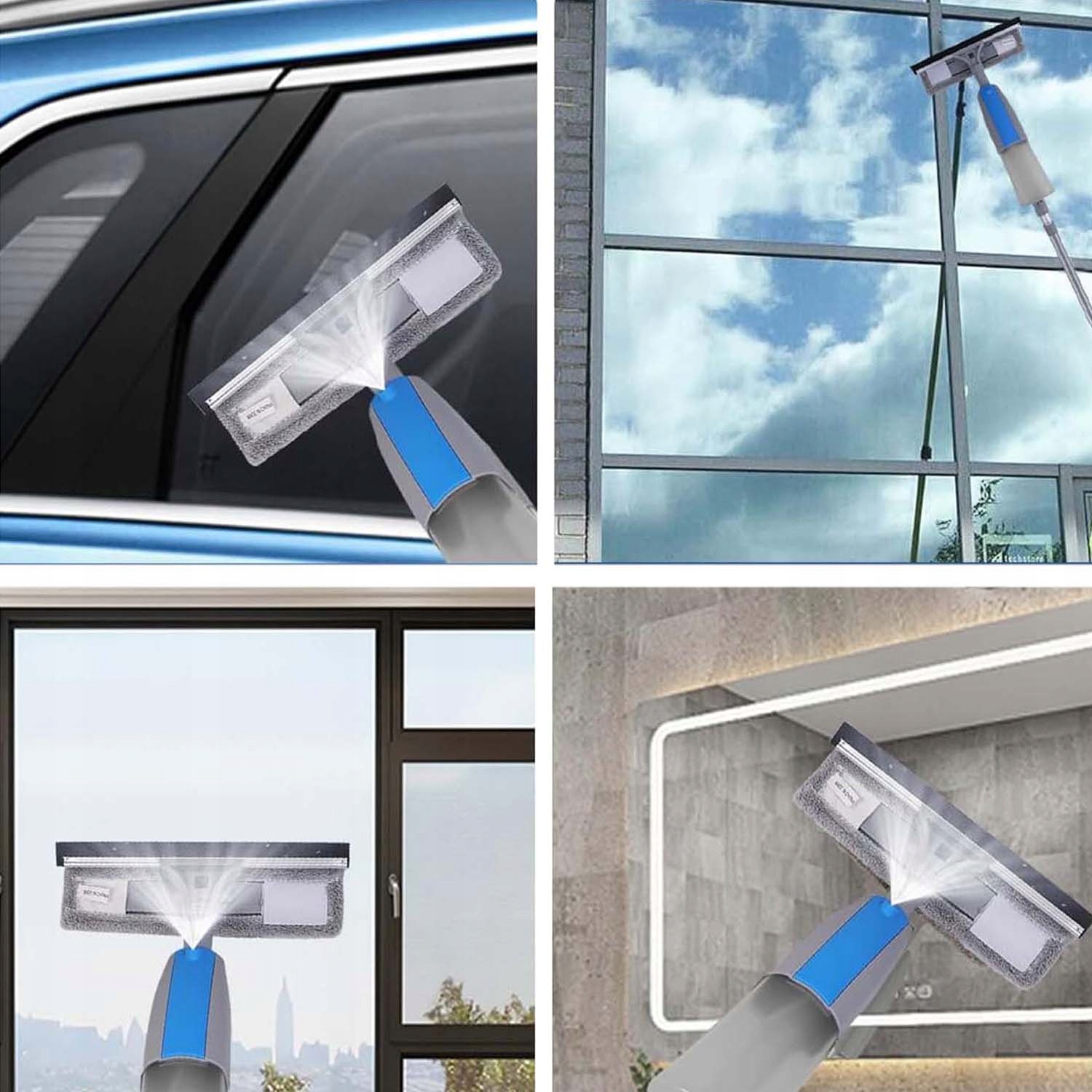 Цей інструмент для миття вікон постачається з пляшкою, 2 скребками та 2 серветками з мікрофібри та може ефективно мити внутрішні та зовнішні високі вікна, скляні душові двері, автомобіль вікна, дзеркала, плитка на стінах та інше. Це найкращий вибір для миття вікон усередині та зовні.