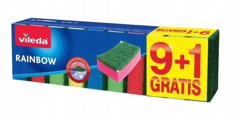 VILEDA ГУБКА ДЛЯ МИТТЯ ПОСУДУ РАЇДУГА 9 + 1 МІКС КОЛЬОРІВ VILEDA
