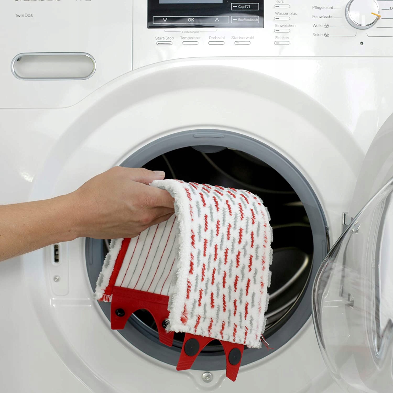 Подушку з мікрофібри можна прати багато разів у пральній машині. Червоні волокна чистячої подушечки ідеально підходять для видалення стійких забруднень. Завдяки функціональній ручці вкладиш легко знімається, без необхідності контакту з брудом.