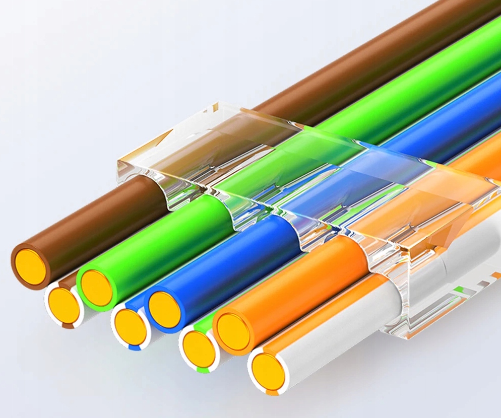 Перевага перед традиційним обтиском роз’ємів полягає в тому, що ця система дозволяє протягувати дроти через вилку та рівномірно розташовувати їх.