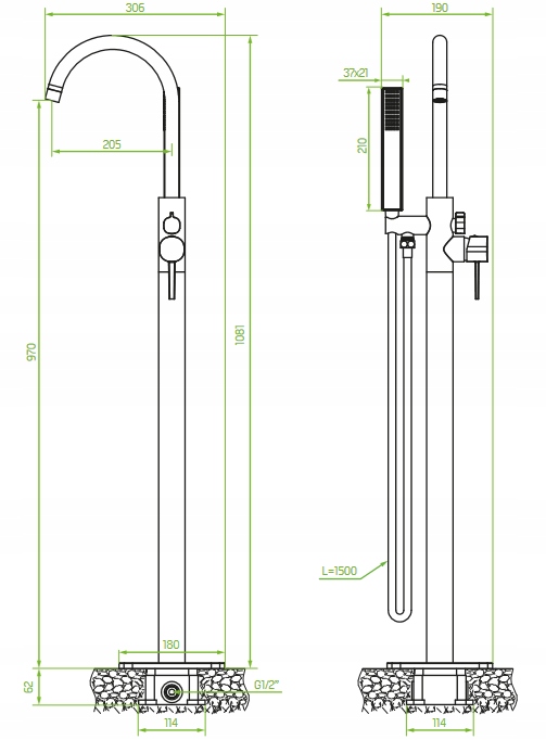 Змішувач для ванни POLA окремо стоячий з прихованою системою BOX, хром