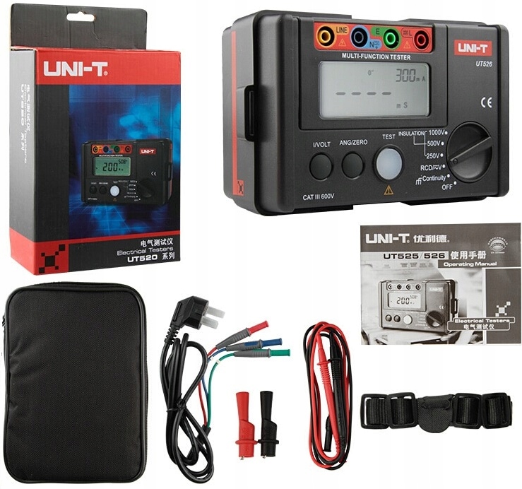 UT526 - цифровий багатофункціональний вимірювач для вимірювань в електроустановках з функцією перевірки УЗО. Вимірювач UT526 в основному використовується для вимірювання опору ізоляції до 500 МОм (0,5 ГОм).