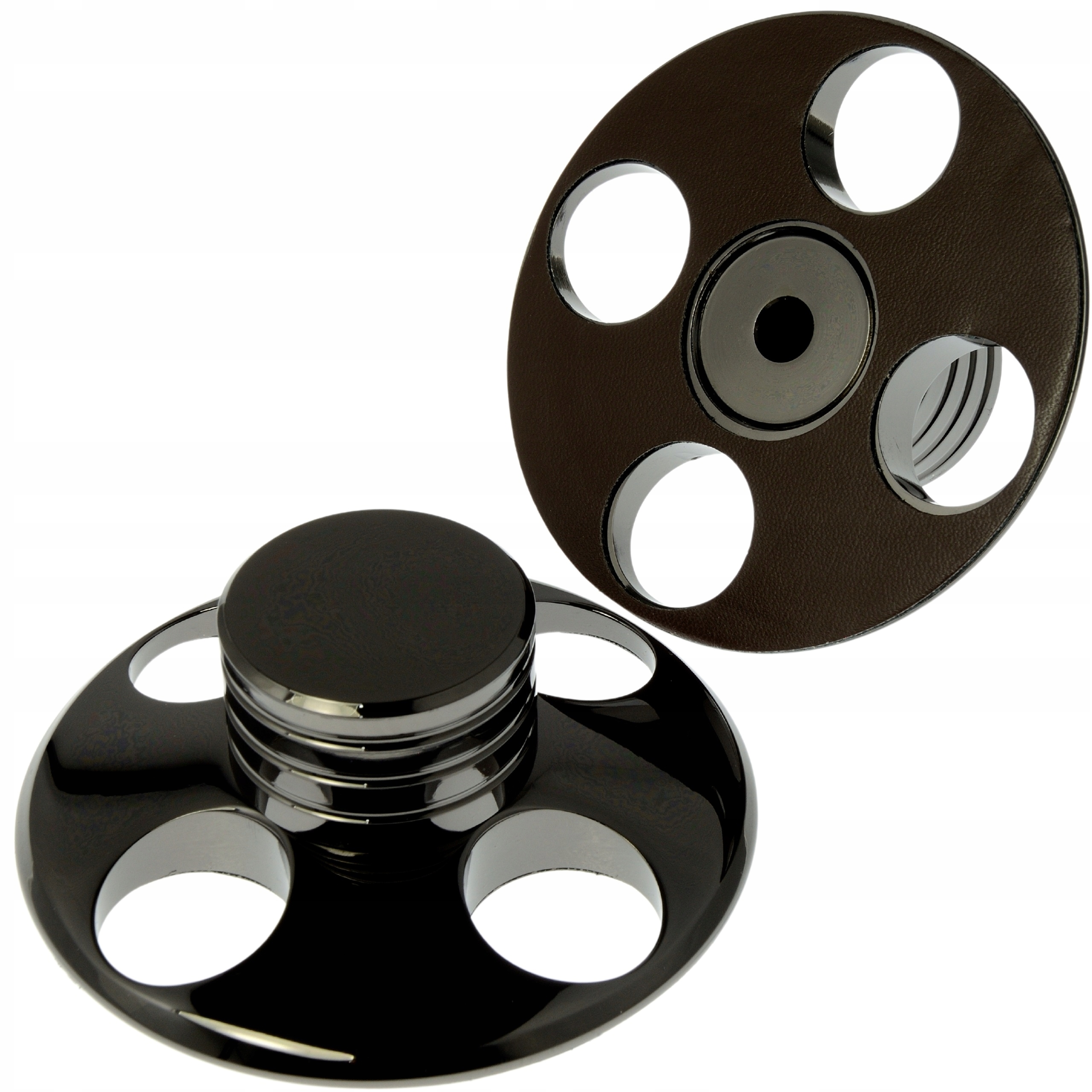 Алюмінієвий фіксатор платівки, що стабілізує відтворення вінілових платівок.