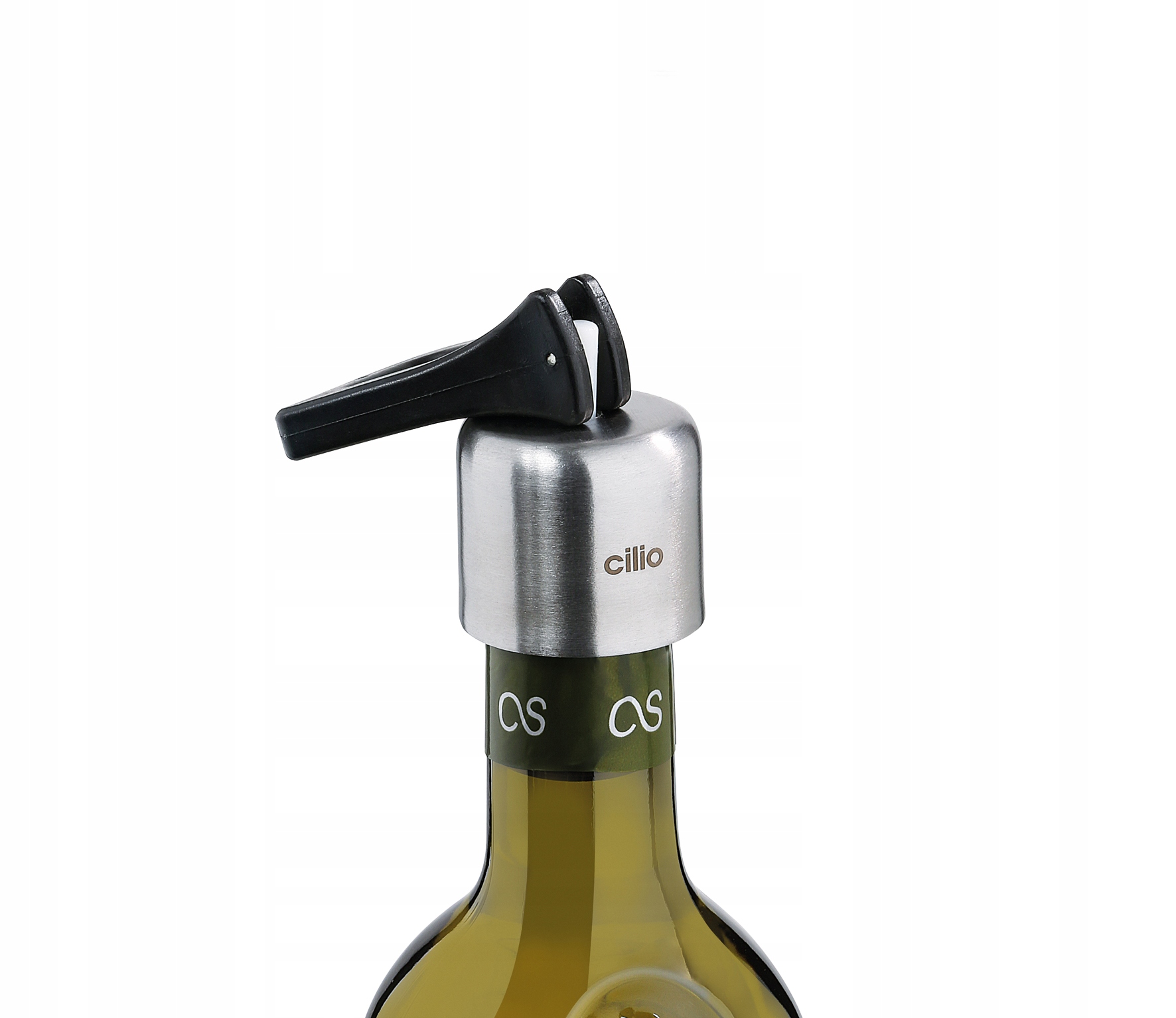 - Щоб використовувати пробку, покладіть її на шийку відкритої розлийте пляшку та натисніть на важіль
