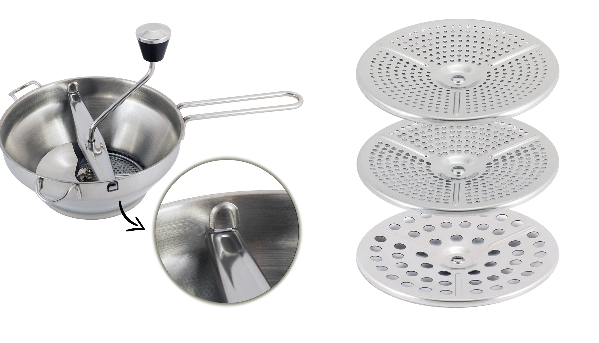 🔸 6 мм сито - більші очі, призначені для витерення продуктів з більш волокнистою структурою, наприклад, картоплею , гарбуз або вареного буряка . Це дозволяє зберігати трохи більше структури в готовому продукті.