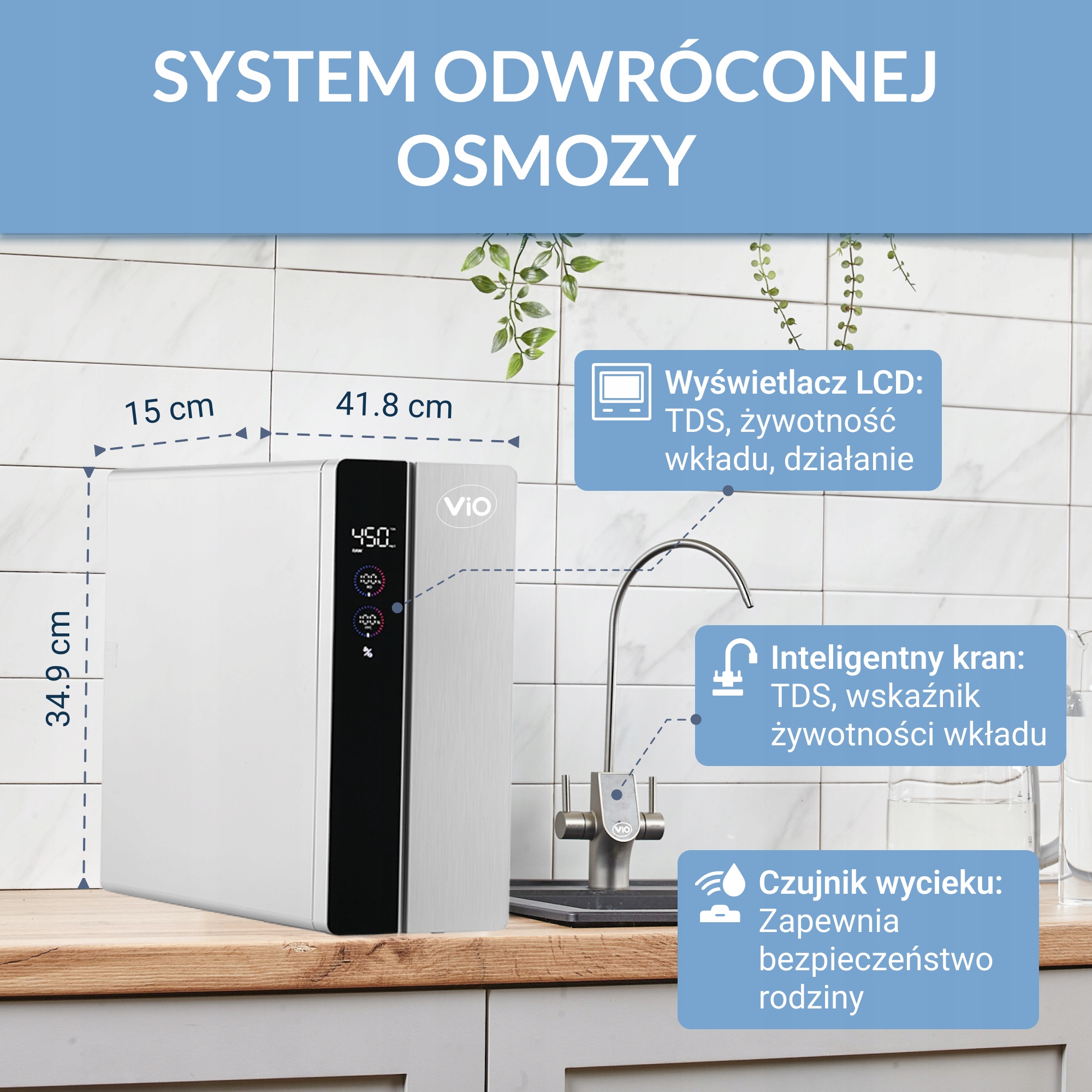 Vio BP-D800G-це інтелектуальна система фільтрації води з перевернутою технологією осмосу, яка забезпечує кристально чисту та смачну воду для всієї родини. Завдяки 4-ступінчастому фільтрації, високій продуктивності (2,1 л/хв) та інтелектуальній функції моніторингу TDS, ця система є ідеальним рішенням для сучасного будинку. Легка заміна фільтрів, чіткий дисплей та елегантний дизайн роблять Vio BP-D800G найкращим вибором для всіх, хто цінує чисту воду щодня.