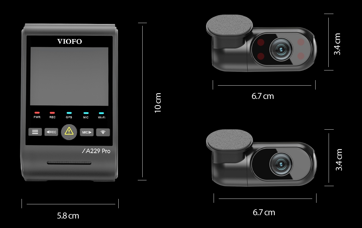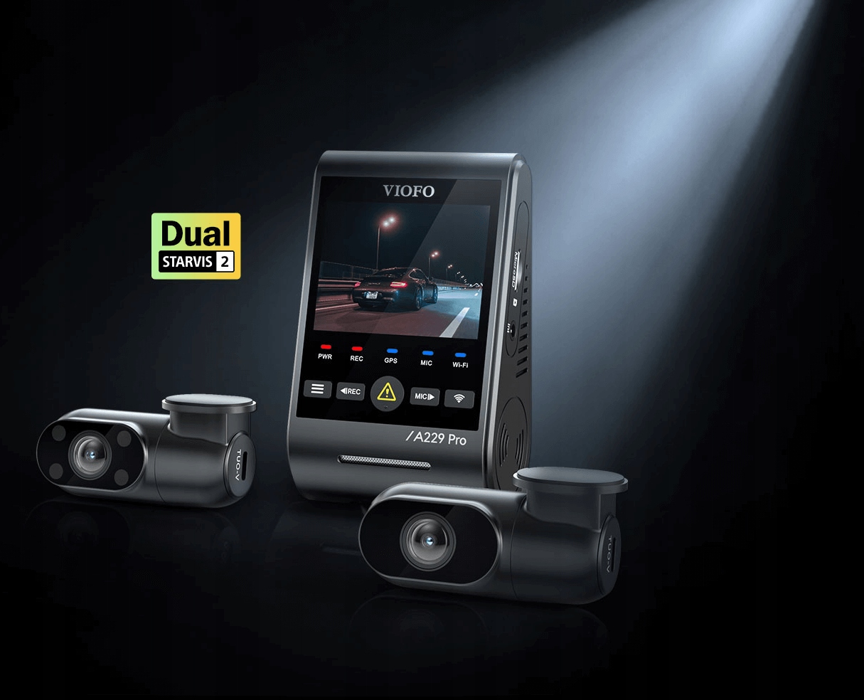 Viofo A229 Pro був оснащений матрицями Sony Starvis2 та процесором Novatek NTK96529. Фронт - це остання модель Sony IMX678i IMX675, інтер'єр - це матриця Sony IMX307.
