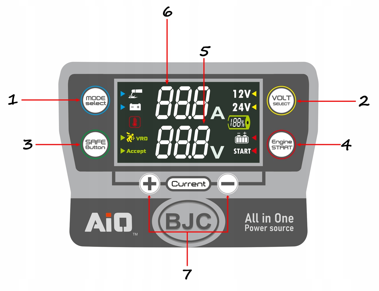Пристрій BJC AiO використовує систему обмеження зарядного струму. Завдяки цьому рішенню ми можемо обмежити зарядний струм до 10% від ємності зарядженого акумулятора (регулювання сили струму за допомогою кнопок +, -, Current).