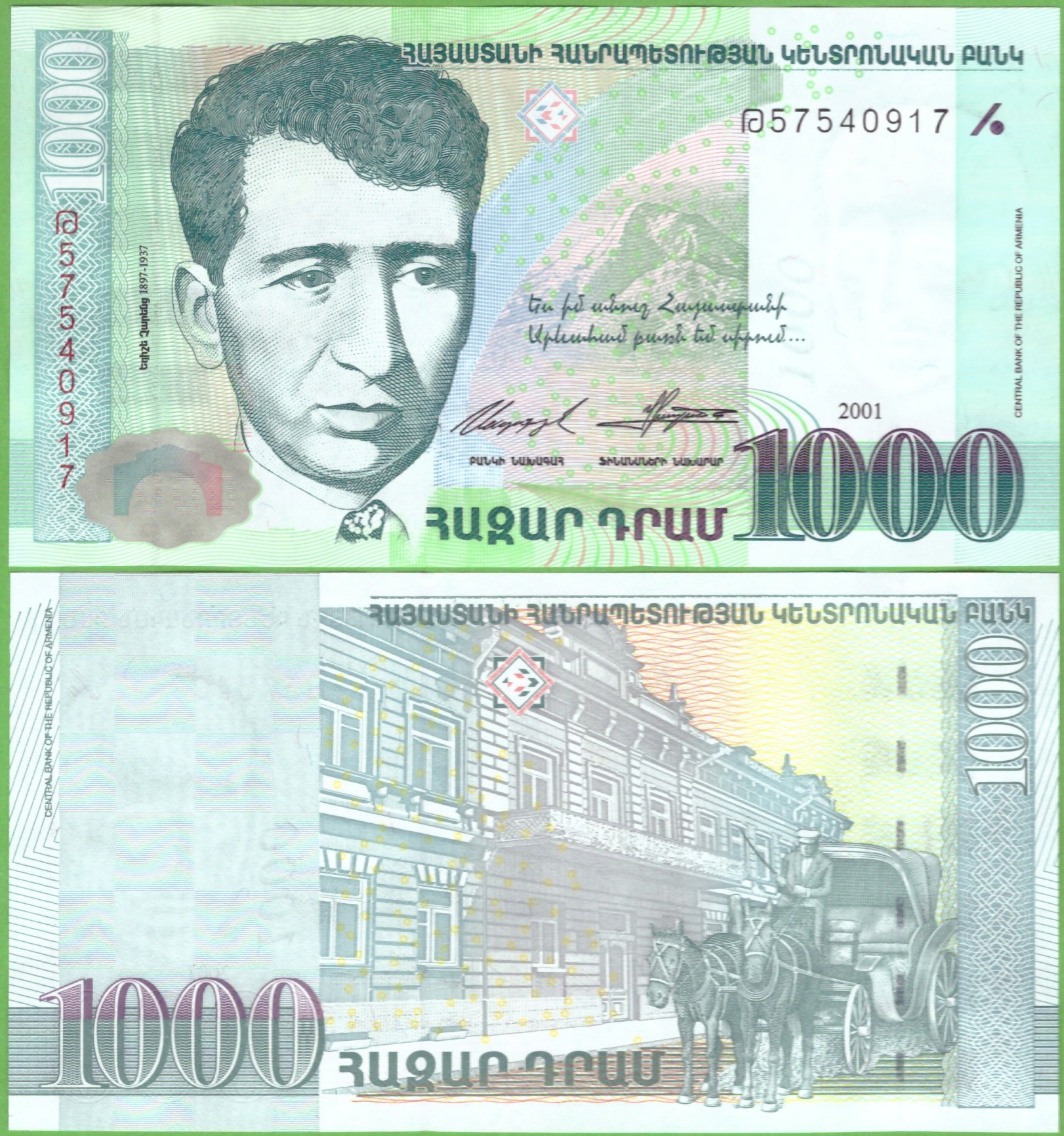 ВІРМЕНІЯ 1000 драм 2001 P-50b UNC