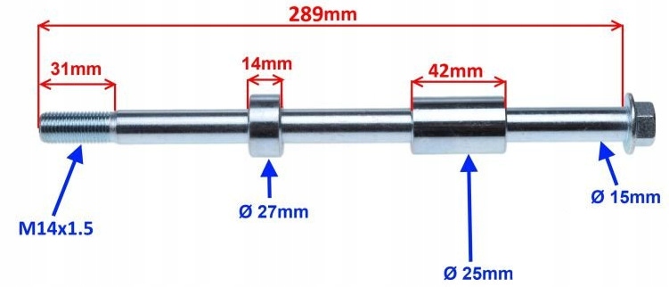 - довжина осі: 289 мм
