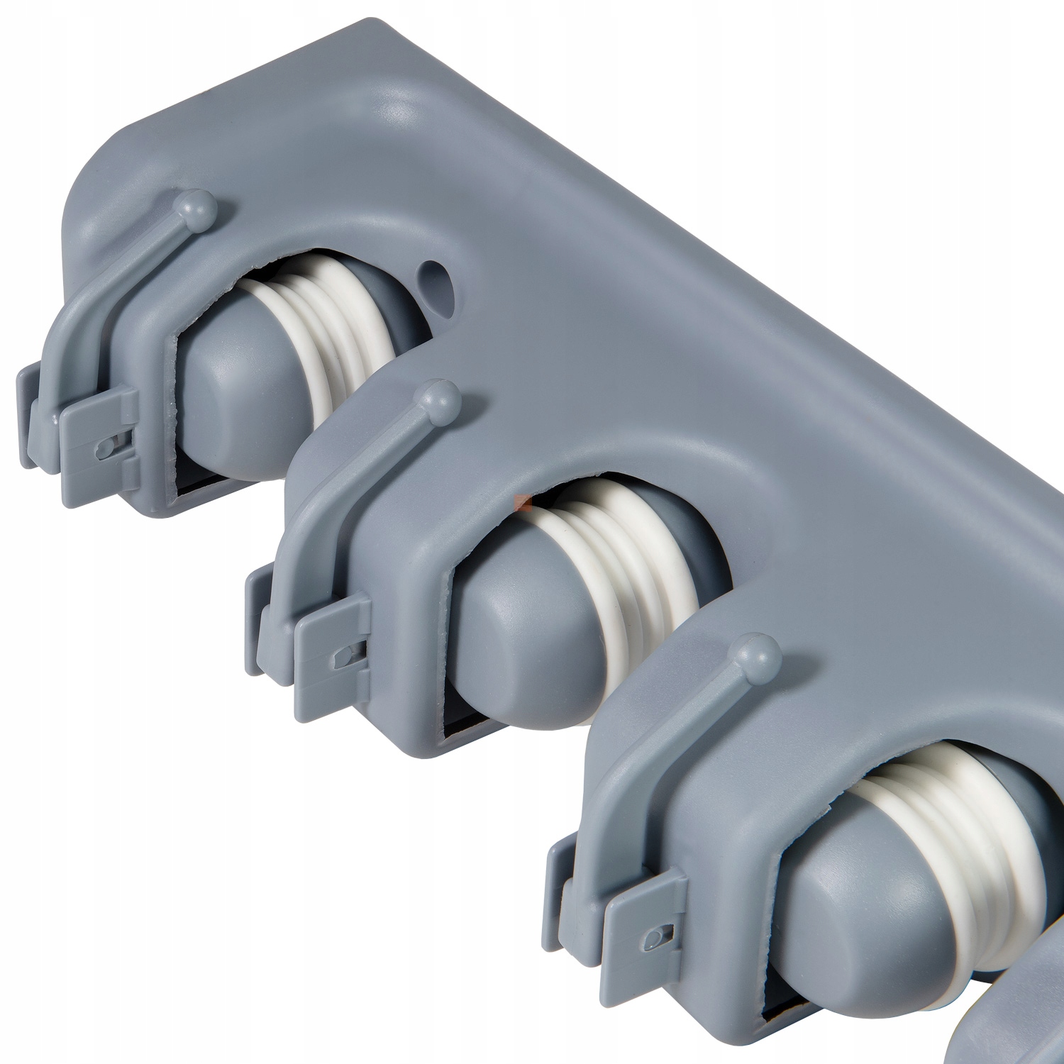 Вішалка оснащена чотирма тримачами для щіток, швабр, граблів та інших інструментів на паличці. Завдяки використанню обертових кульок у конструкції ручки вона адаптується до товщини хвостовика інструменту. Завдяки такому рішенню віники та інше начиння міцно тримаються та не випадають з ручки.
