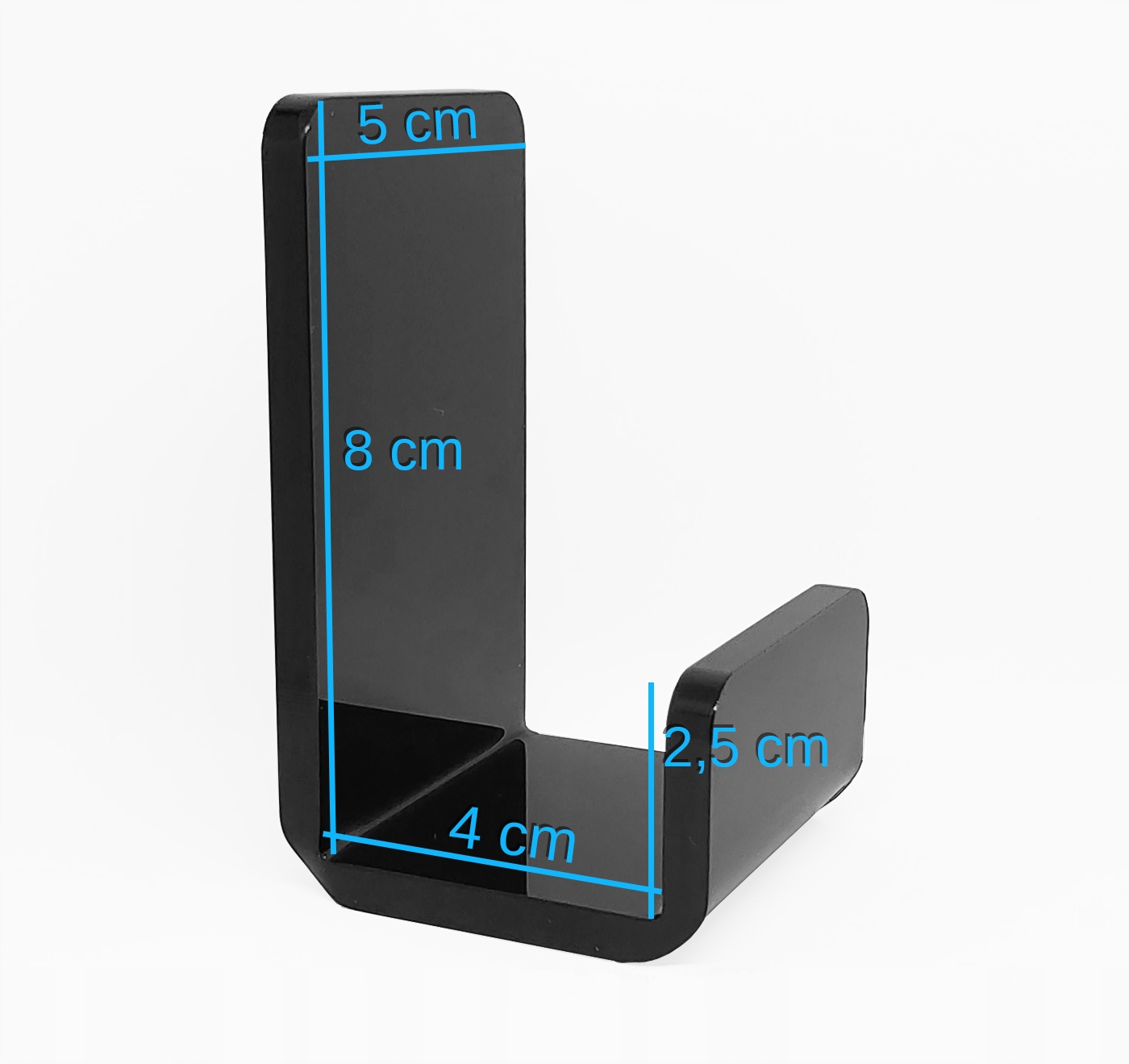 Універсальний тримач для навушників з високоякісного оргскла. Він має двосторонню стрічку, яка забезпечує надійне кріплення тримача до столу чи іншої плоскої поверхні. Тримач дозволяє повісити будь-який тип навушників - він повністю універсальний.