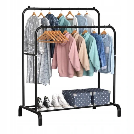 Подвійна вішалка для одягу, щоб все було в порядку. Тут є місце для підвішування вішалок, вільних пальто чи курток і полиці для взуття.