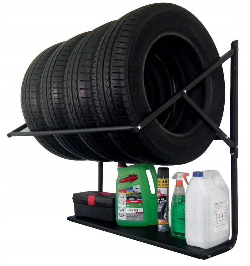 Вішалка для сегментів S4P використовується для зберігання чотирьох шиниабо диски автомобіля. Додатково до вішалки входить полиця для аксесуарів. Двоступеневе регулювання забезпечує правильне розташування опорних брусів залежно від діаметра коліс, що зберігаються. Вішалка виготовлена із закритих, сертифікованих сталевих профілів із порошковим покриттям у чорний матовий колір.