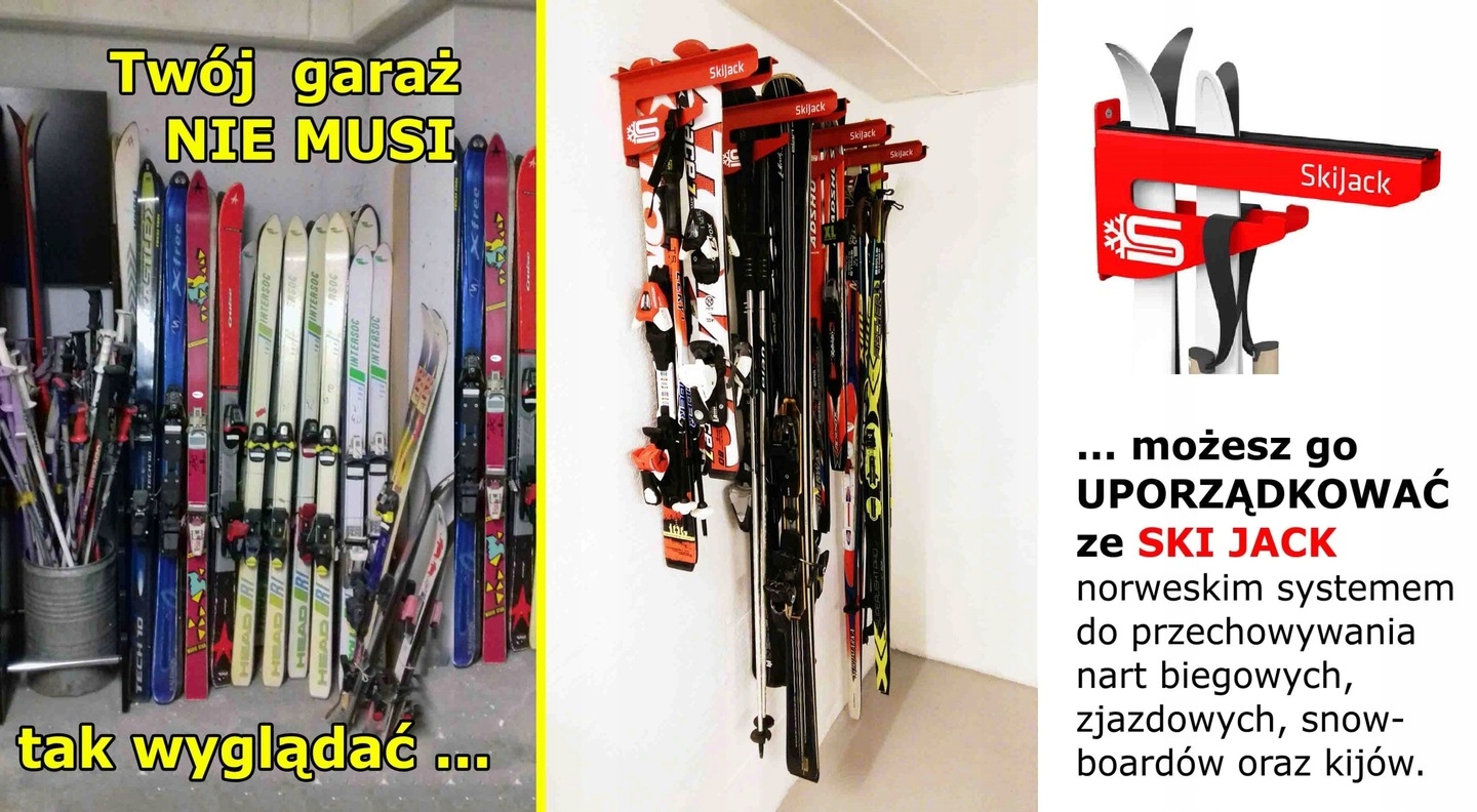 Інноваційна вішалка SKIJACKце революція на зберіганні зимове спорядження! Забудьте про безлад та брак місця для ваших лиж! Skijack базує свою функціональність нанорвезькому патенті, забезпечуючи ідеальне зберігання вашого обладнання з мінімальним займанням місця. Попередню версію вішалки було покращено, щоб бути максимальноуніверсальним і підходити до всіх типів лиж.