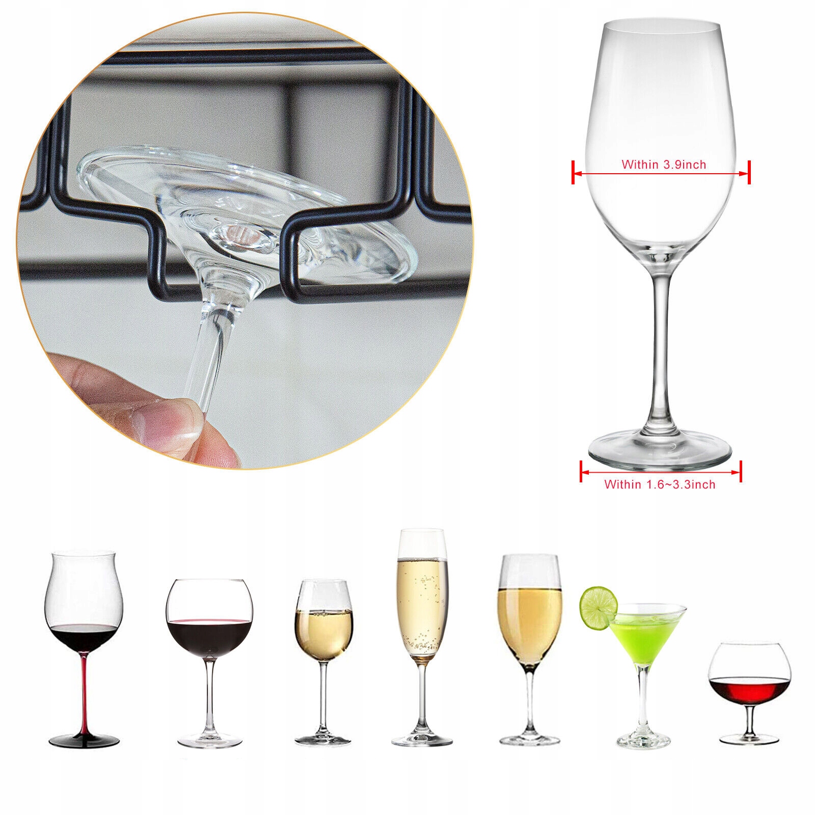 🍷🍷 Високий допуск:Ширина отвору тримача для винних келихів становить 9 см, а конструкція має відкритий отвір. Залежно від розміру келиха кожен тримач може вмістити від 2 до 3 келихів. Підходить для різних келихів на ніжках, таких як келихи для бордоського вина, келихи для білого вина, келихи для коктейлів тощо.