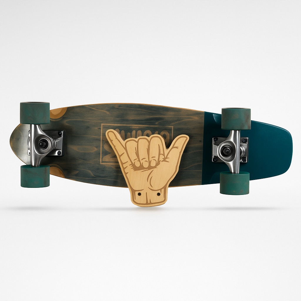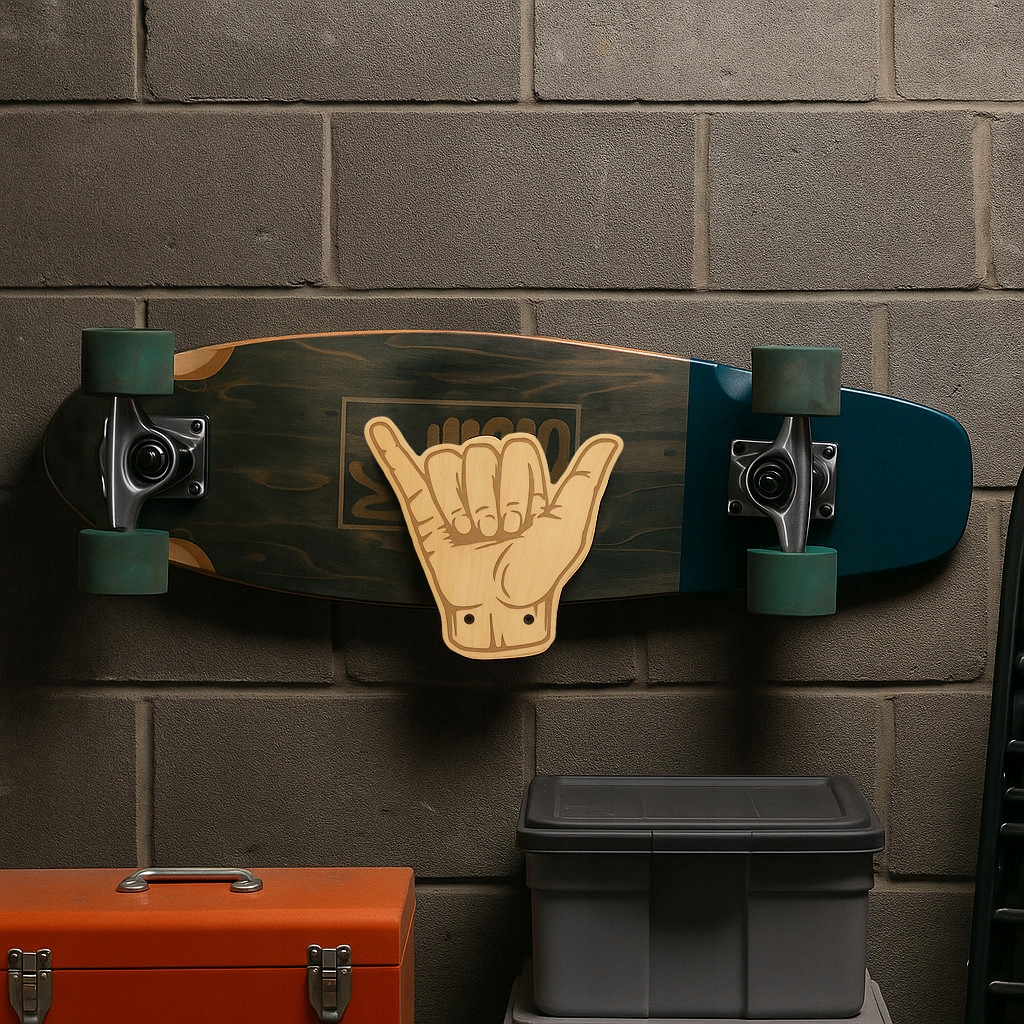 - Повний набір - Shaka 1 включає 1 ручку у формі руки у гавайському стилі шака та кріпильні шпильки та гвинти для горизонтального кріплення в середині дошки.