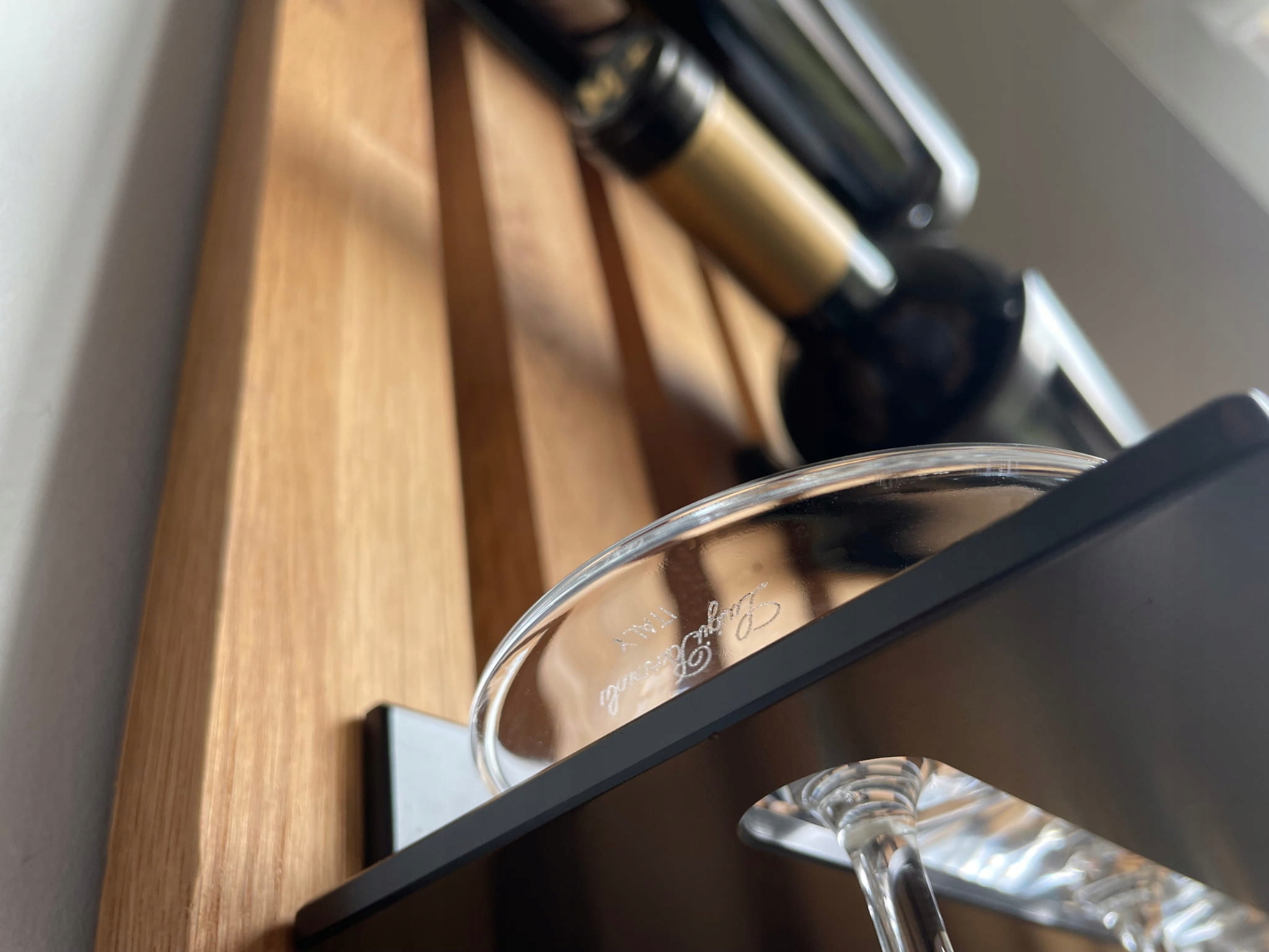 Додатковою перевагою нашої підставки є алюмінієва підвіска для фужеру, що робить її комплексним рішенням для зберігання вина. аксесуари. Дубові елементи ретельно вкриті деревним маслом, що надає їм унікальний вигляд і забезпечує довговічність протягом багатьох років.