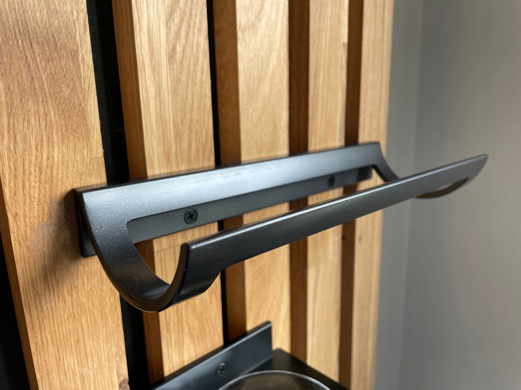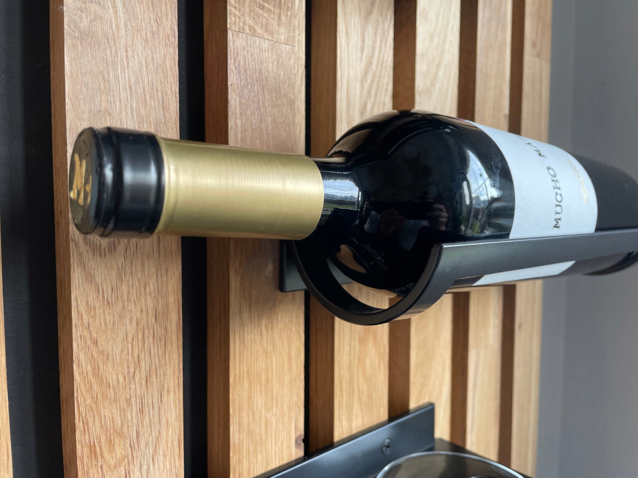 Вішалка для вина з дуба — надзвичайно елегантне та практичне рішення для любителів вина та натуральних прикрас. Наша підставка має розміри 98х40 см і складається з красивих дубових ламелей довжиною 98 см. На цих ламелях є чотири чорні алюмінієві полиці для вина, які ідеально поєднуються з матеріалом дерев’яної конструкції.